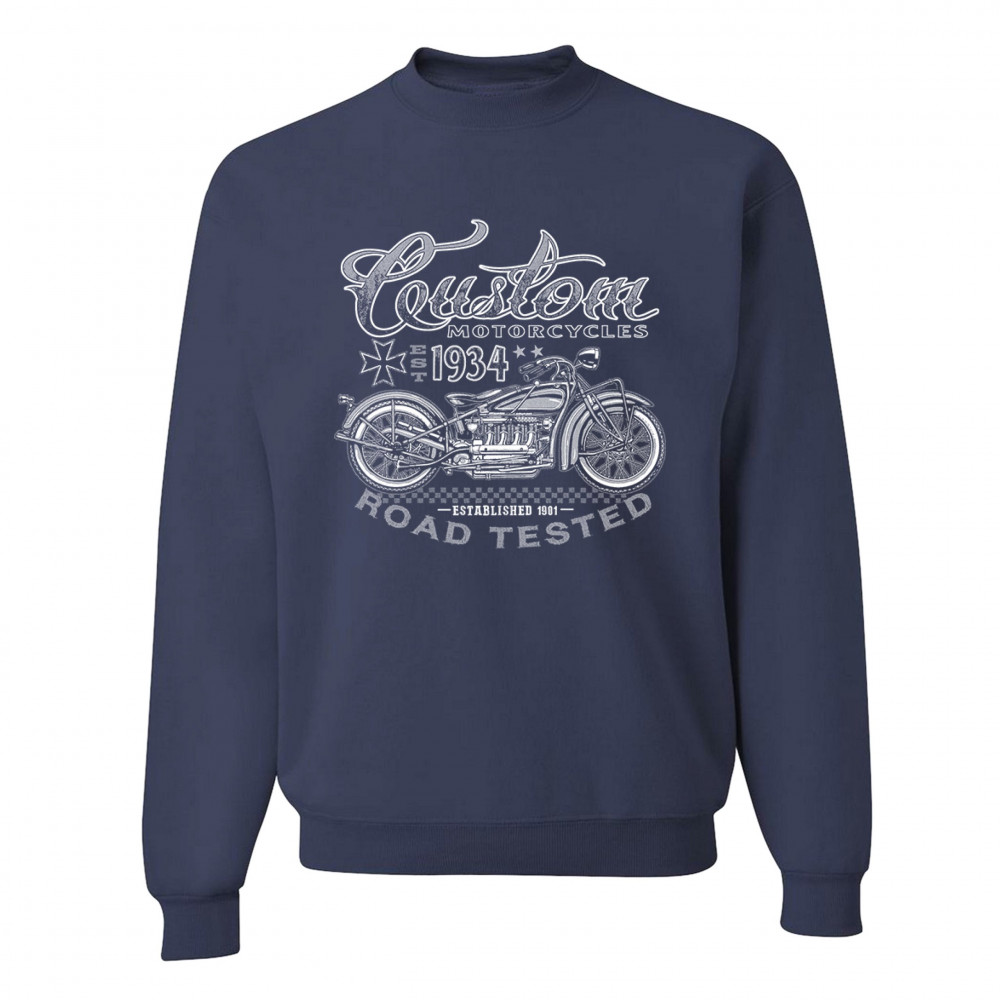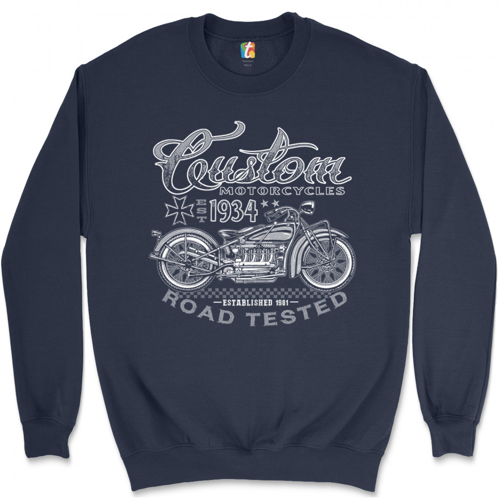 CUSTOM MOTORCYCLES ROAD TESTED sweatshirt bobber biker gang mc crewneck navy blue