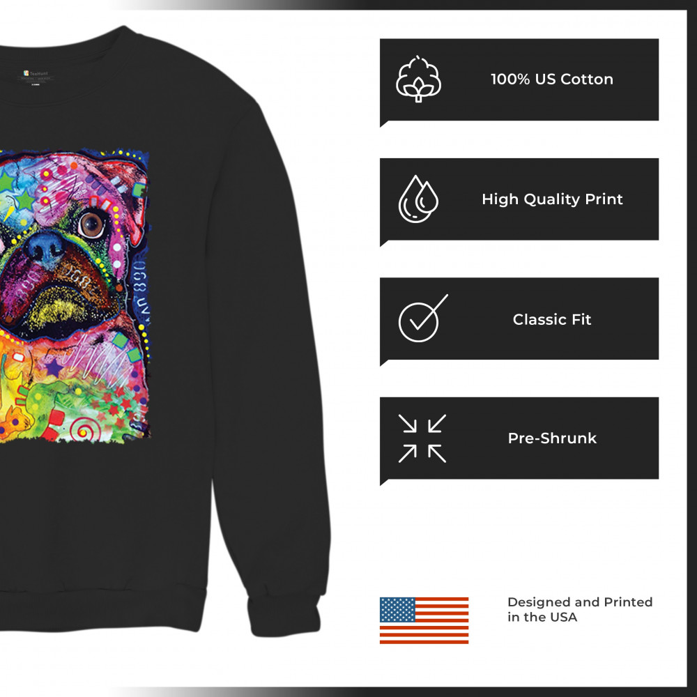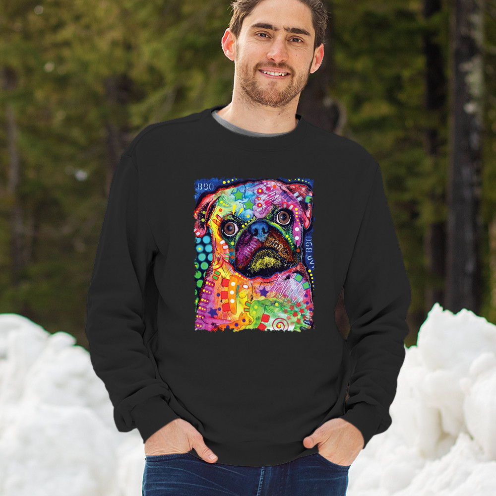 CUTE PUG PUPPY sweatshirt dean russo colorful neon mosaic dog art crewneck black