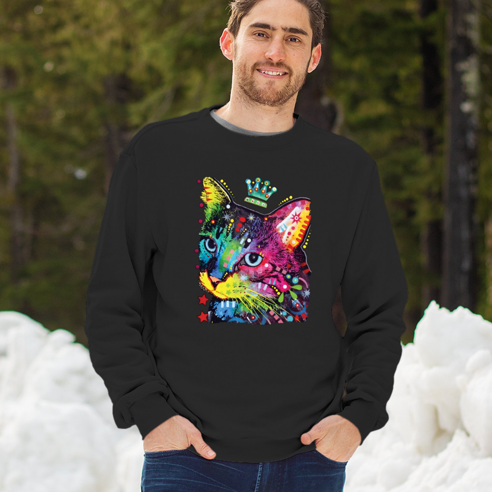CUTE THINKING CROWNED CAT sweatshirt dean russo colorful kitten crewneck black