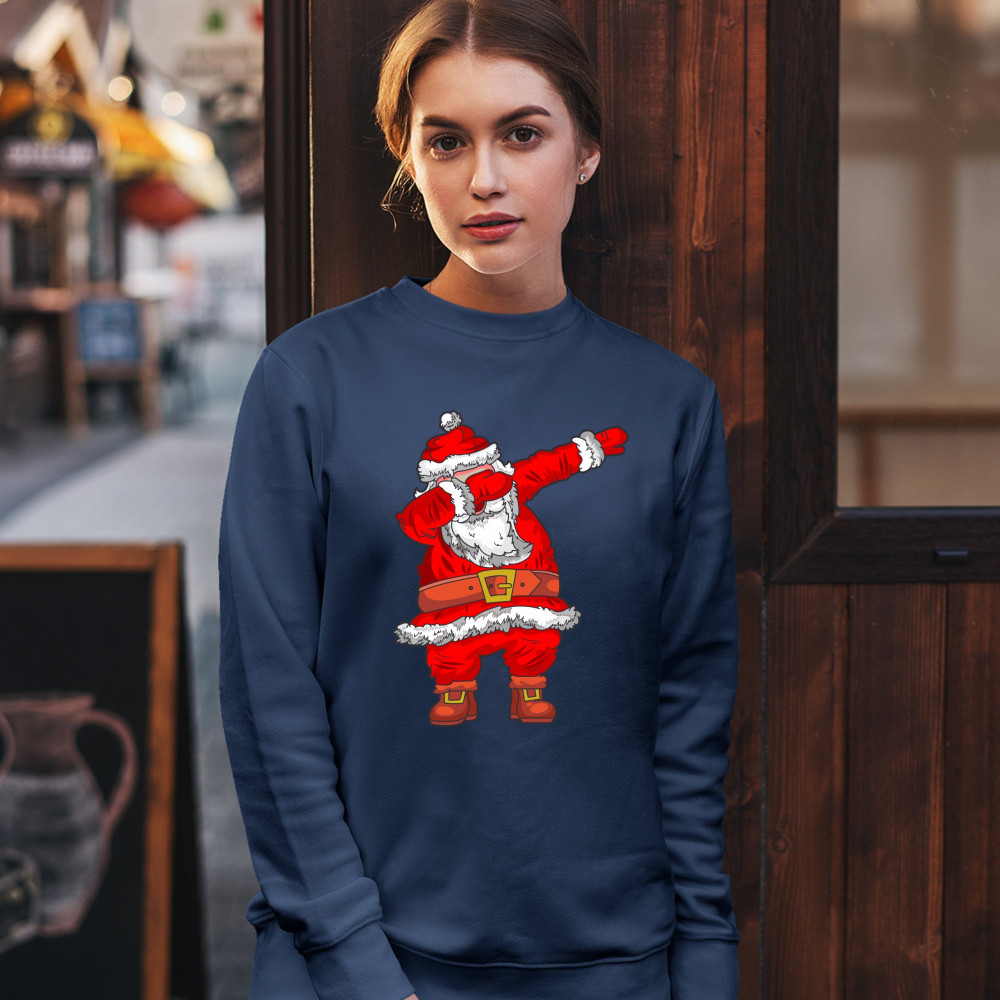 DABBING SANTA CLAUS sweatshirt merry christmas funny dab dance x-mas crewneck navy blue