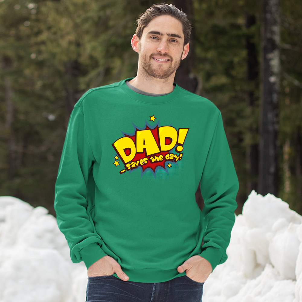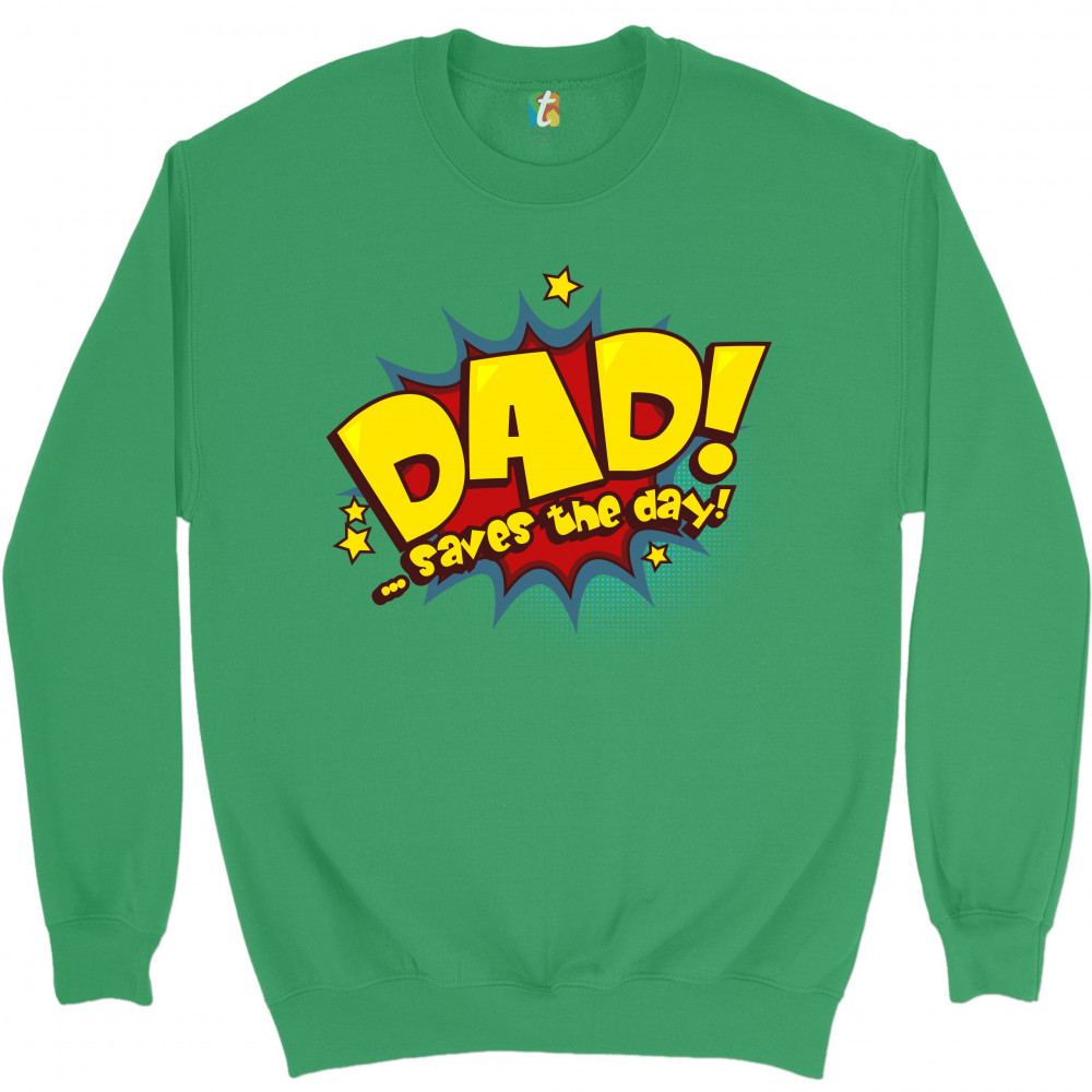 DAD SAVES THE DAY! sweatshirt father's day world's greatest dad crewneck green