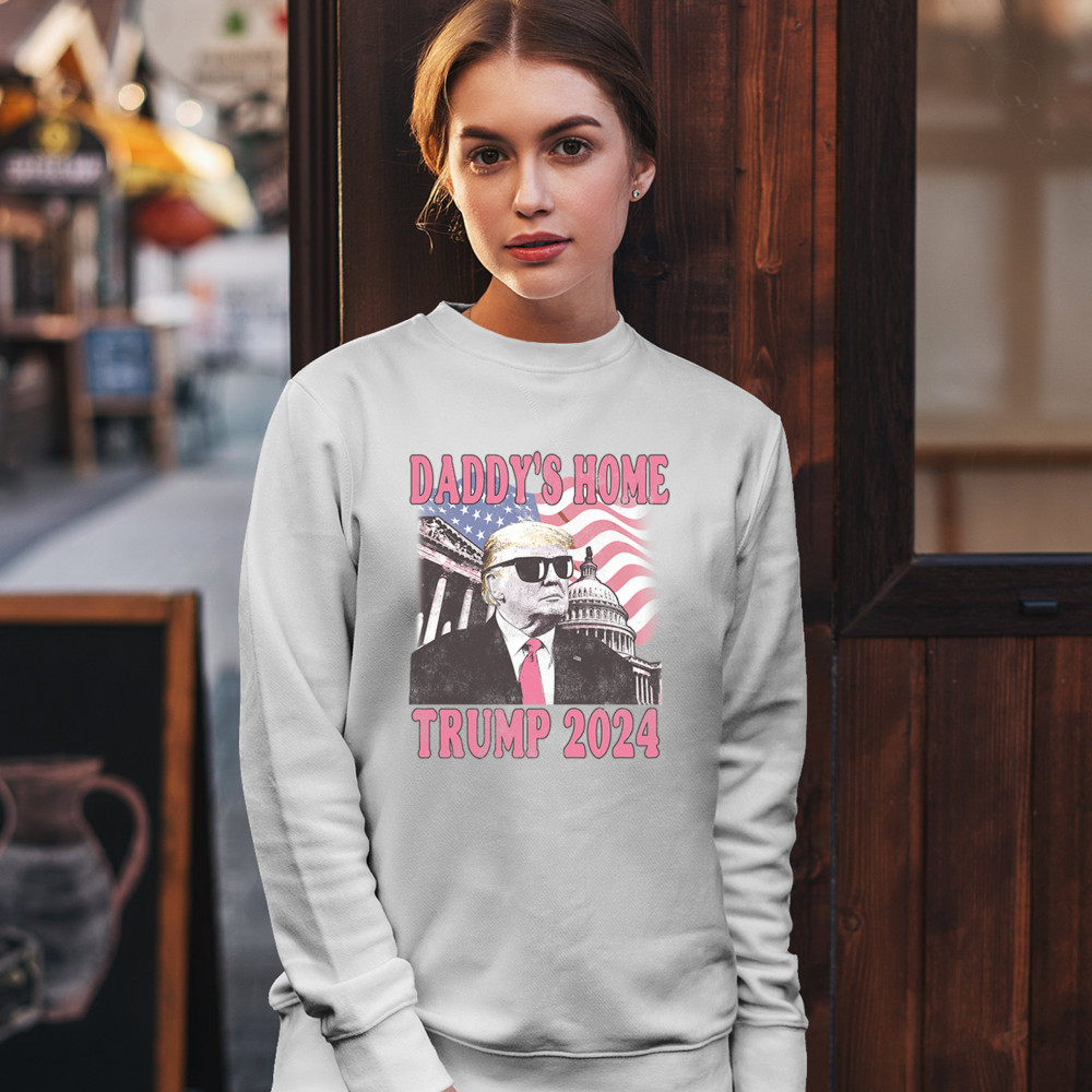 Support Donald Trump with our "Daddy's Home Trump 2024" design, showcasing strength and patriotism. Perfect for conservative supporters.