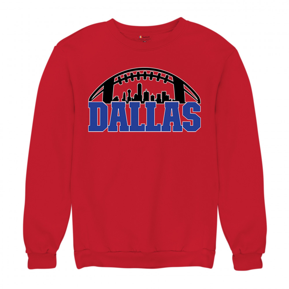 Show off your Dallas pride with a bold football-themed design featuring the city's skyline. Perfect for game days, tailgates, and passionate fans.