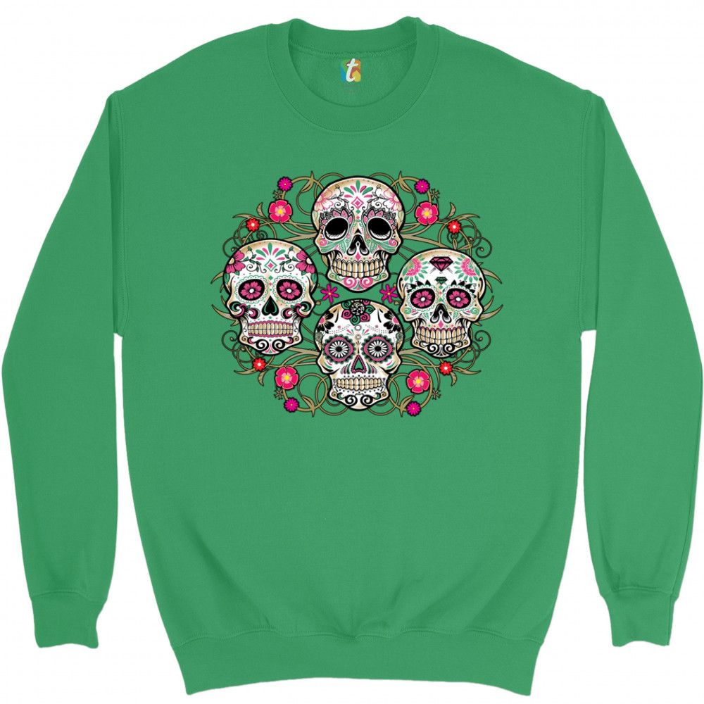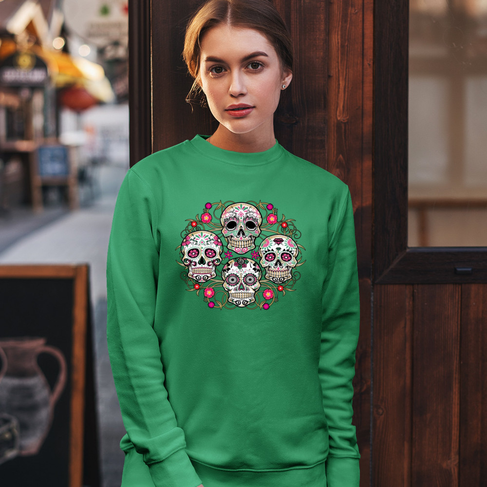 DAY OF THE DEAD FLORAL SUGAR SKULLS sweatshirt dia de los muertos crewneck green