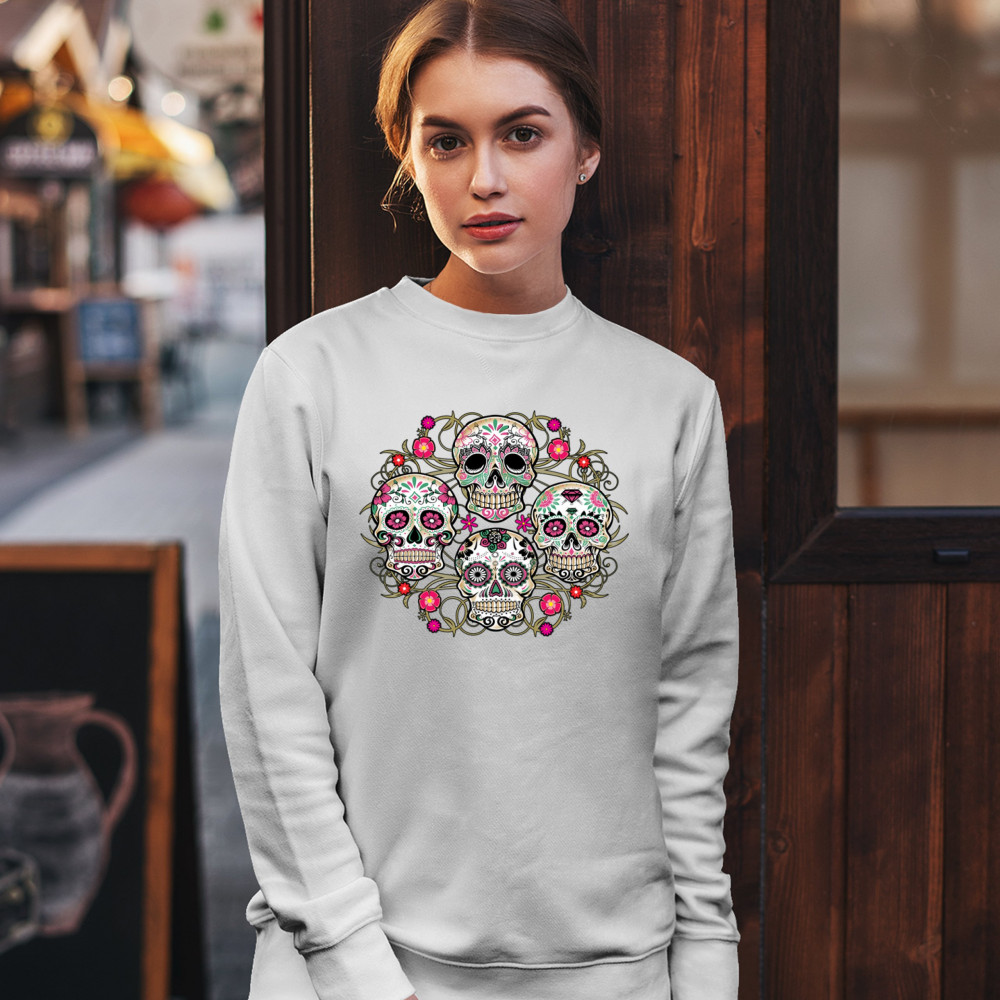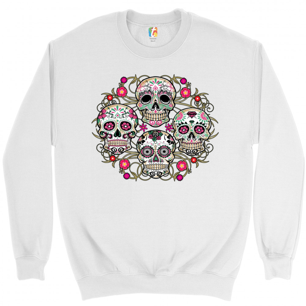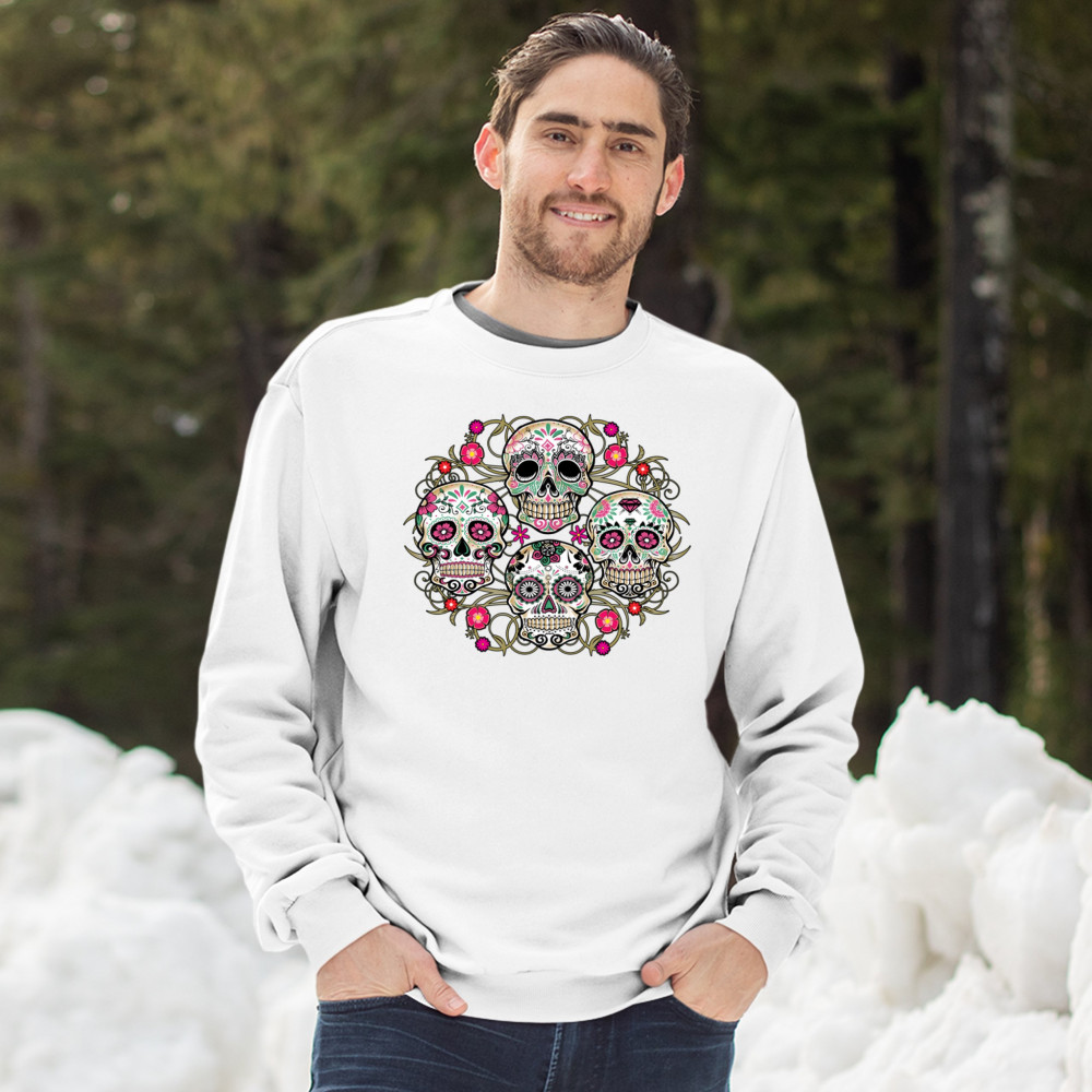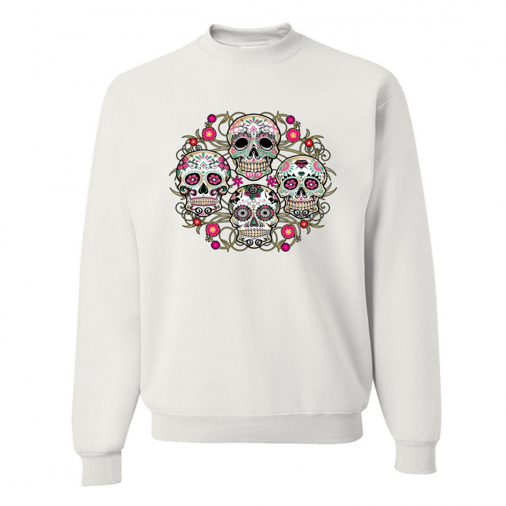 DAY OF THE DEAD FLORAL SUGAR SKULLS sweatshirt dia de los muertos crewneck white