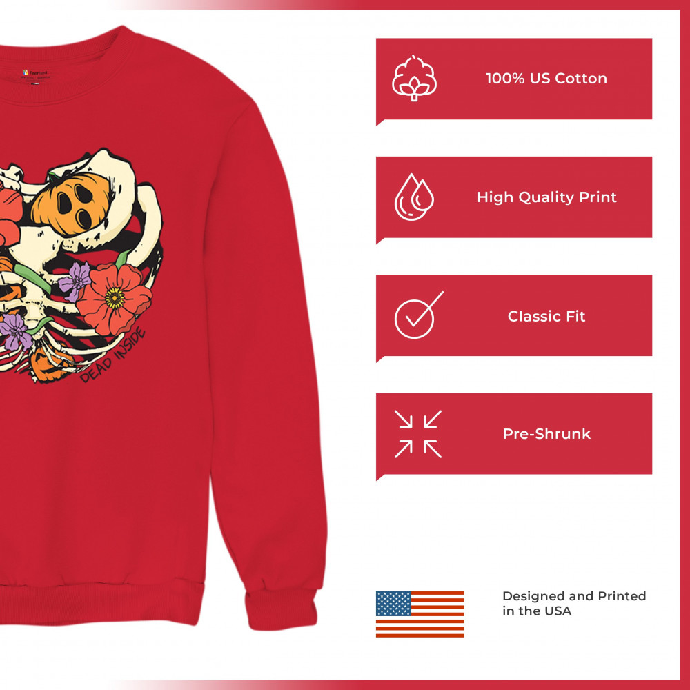 This Halloween-inspired design is sure to turn heads. The image features a skeleton ribcage with pumpkins and flowers intertwined, giving it a quirky yet cute appearance. Whether you’re preparing for a Halloween bash, getting ready for a night of trick-or-treating, or just want to celebrate the fall season in style, this graphic is a must-have. With its mix of spooky and sweet, it's perfect for anyone who loves a fun and festive look for the Halloween season.