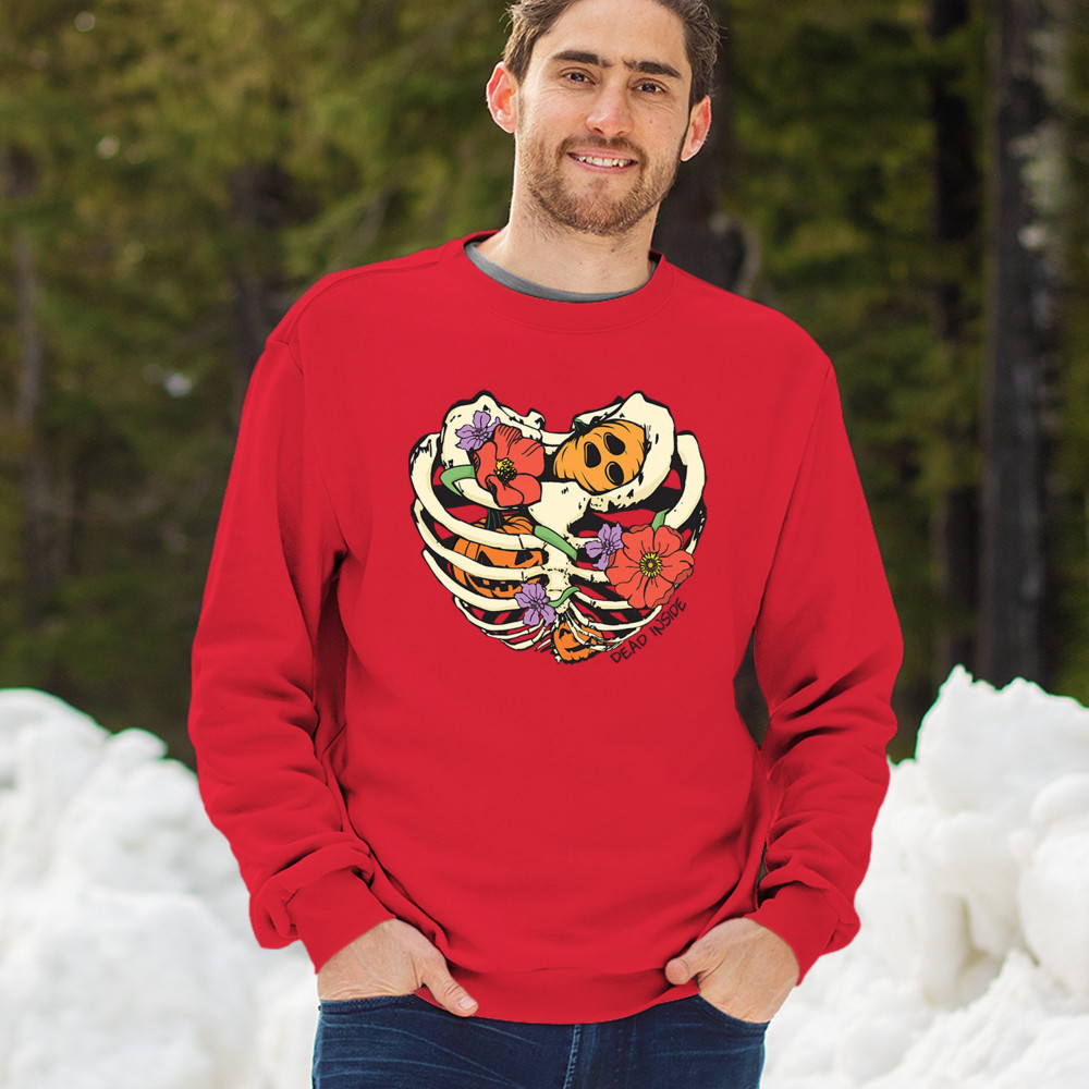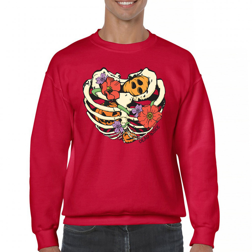 Celebrate Halloween with a quirky and cute design featuring a skeleton ribcage filled with pumpkins and flowers. Perfect for spooky season lovers!