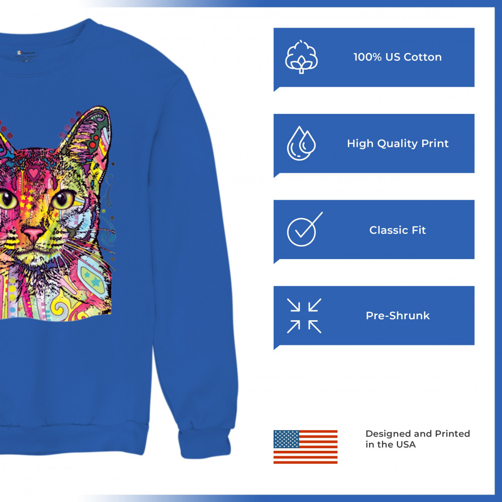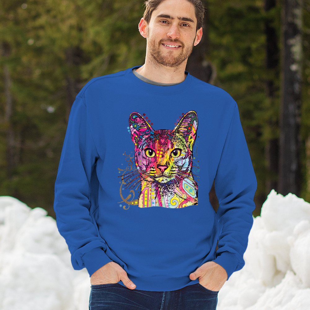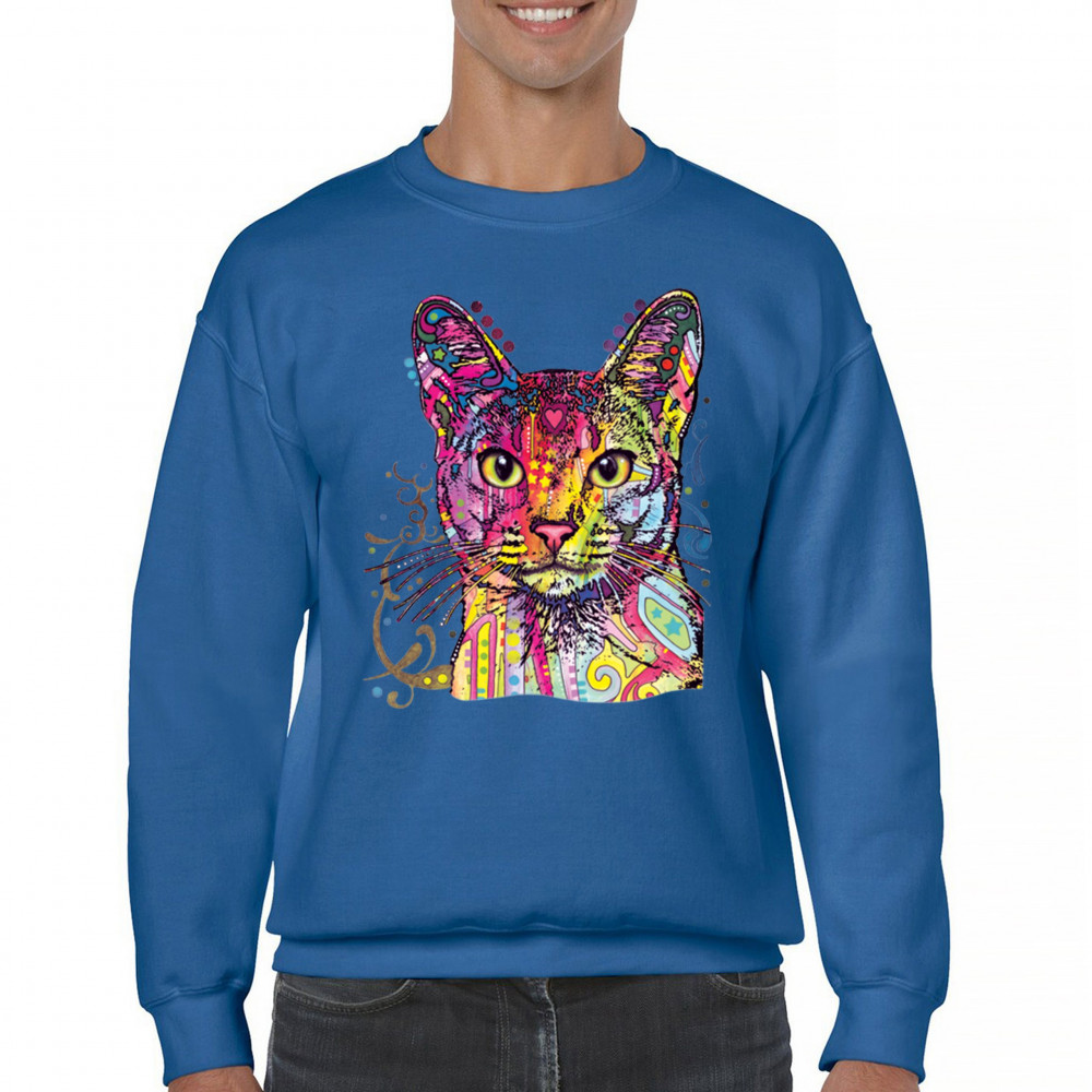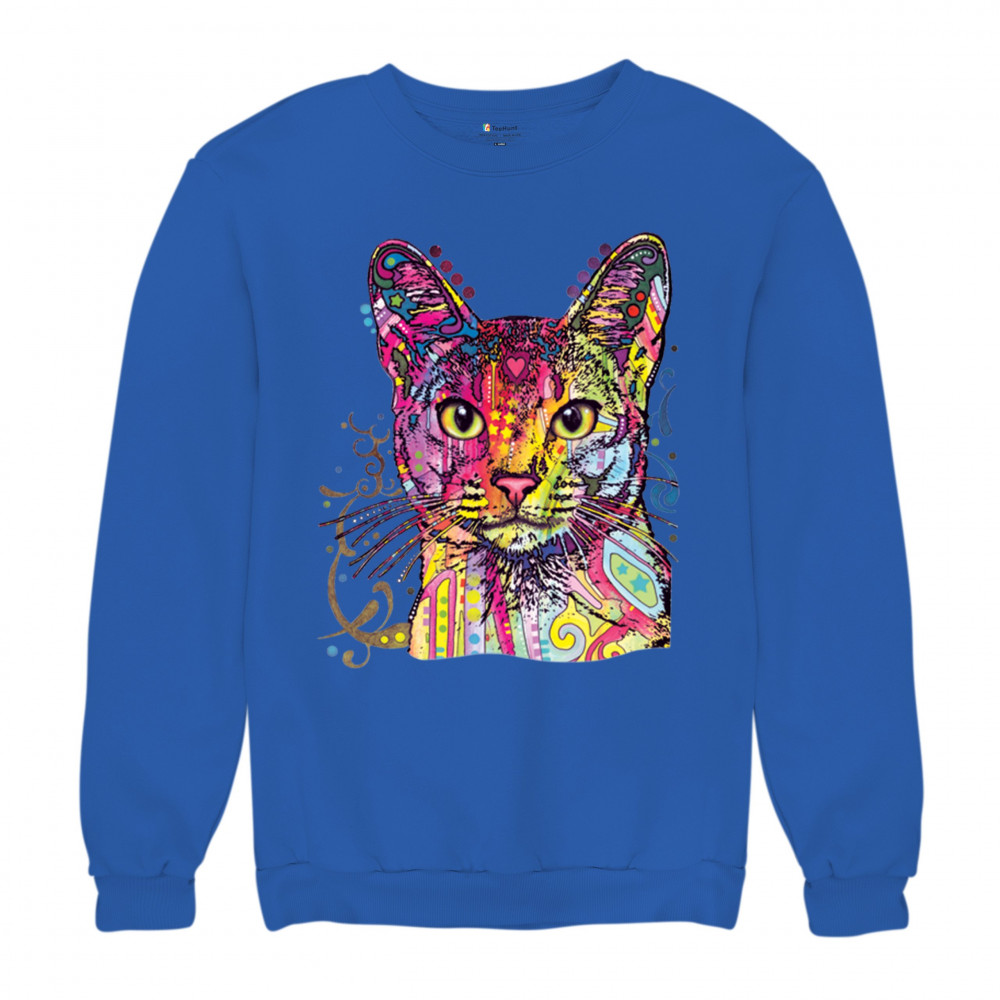 DEAN RUSSO ABYSSINIAN CAT sweatshirt colorful cute kitten pet crewneck royal blue