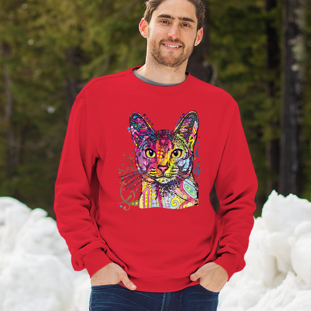 DEAN RUSSO ABYSSINIAN CAT sweatshirt colorful cute kitten pet crewneck red