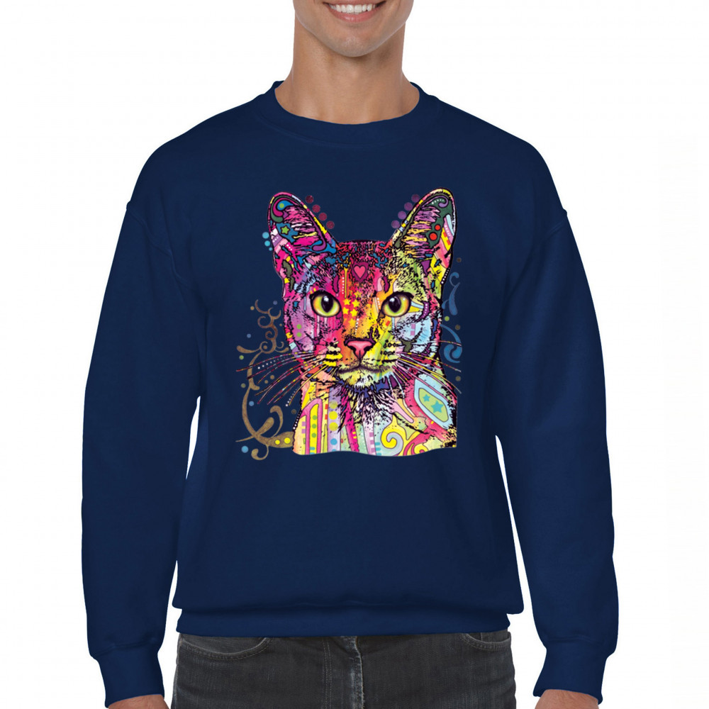 DEAN RUSSO ABYSSINIAN CAT sweatshirt colorful cute kitten pet crewneck navy blue