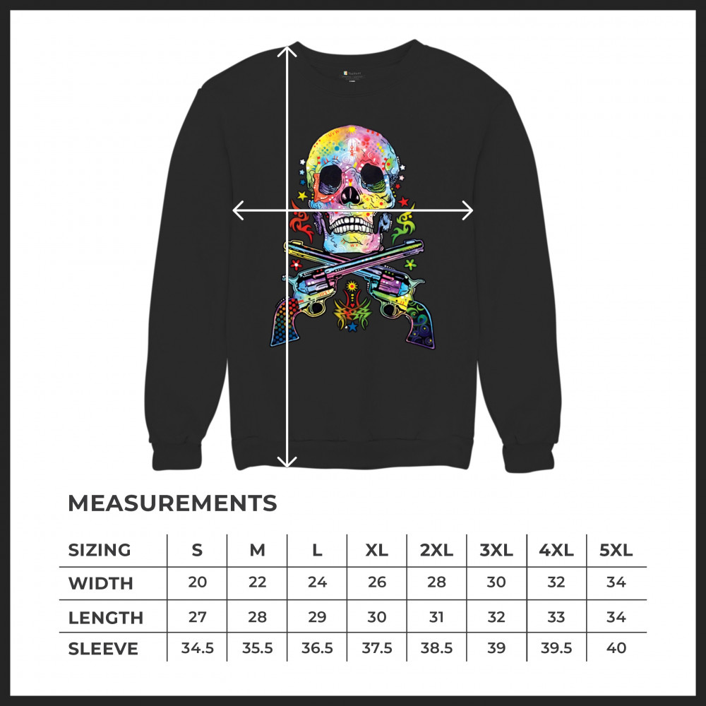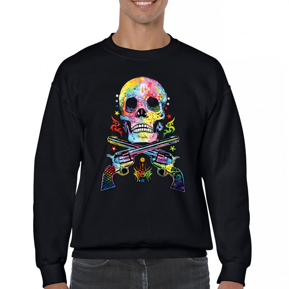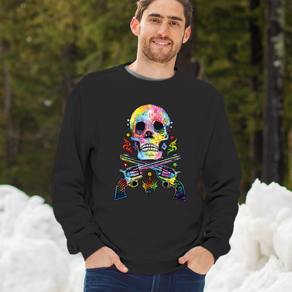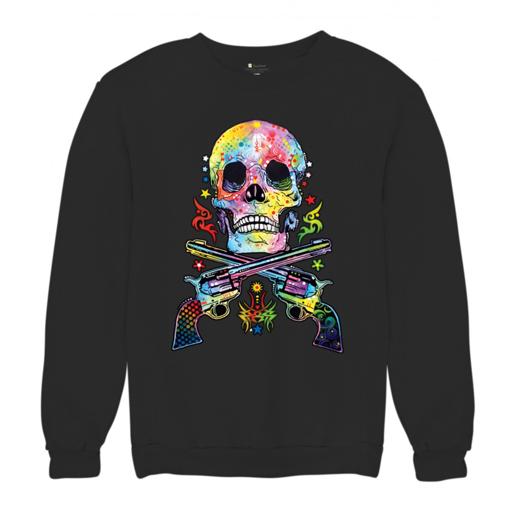 DEAN RUSSO ART SKULL AND GUNS sweatshirt colorful 2nd amendment crewneck black