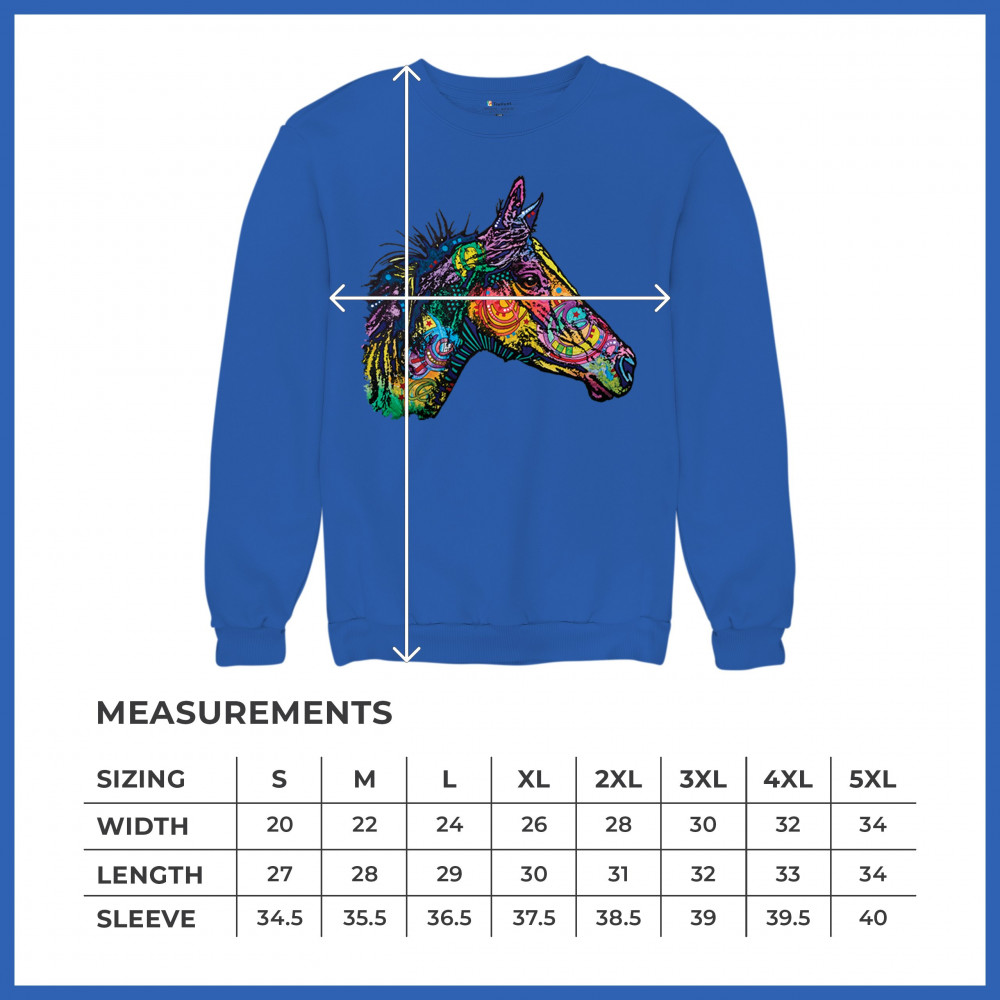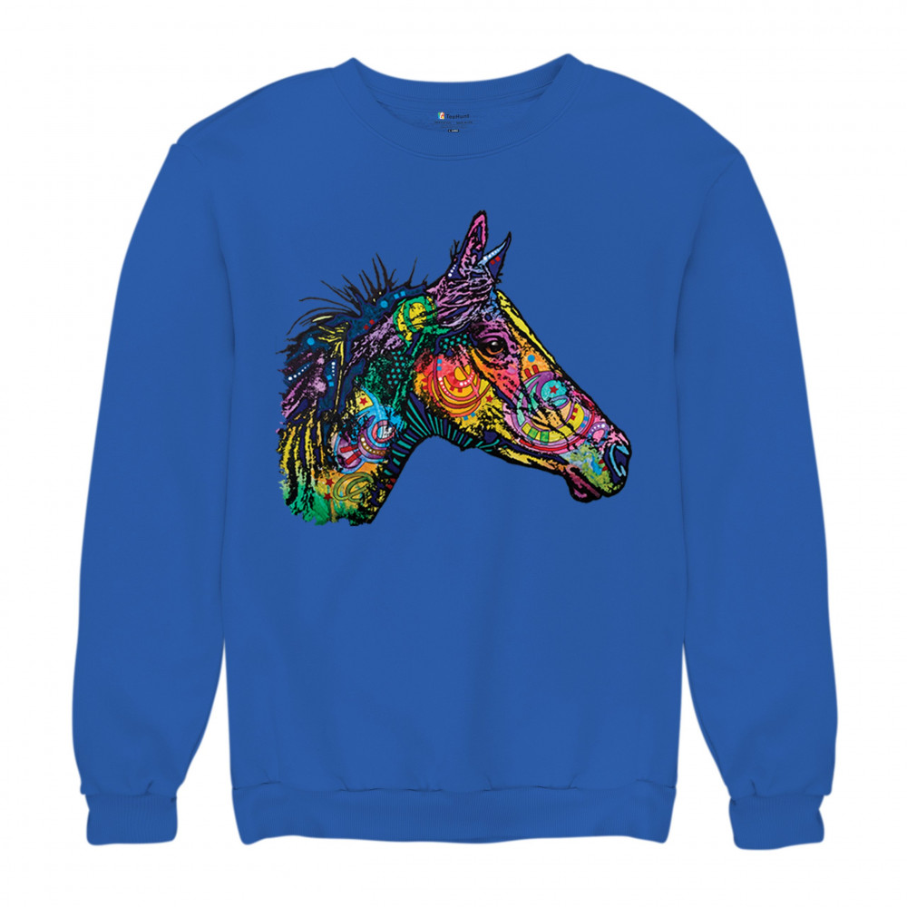 DEAN RUSSO COLORFUL HORSE sweatshirt neon mosaic wild mustang animal crewneck royal blue