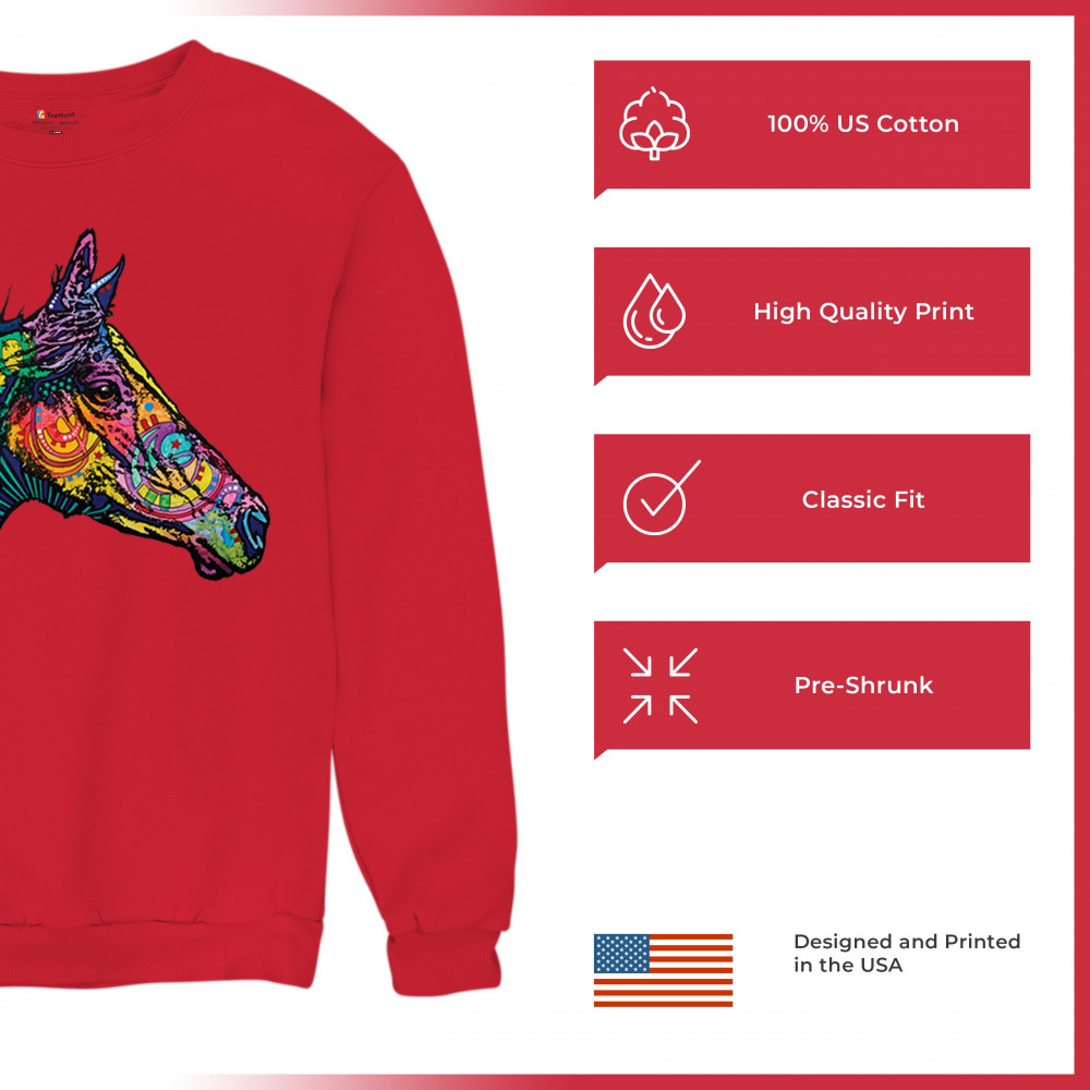 DEAN RUSSO COLORFUL HORSE sweatshirt neon mosaic wild mustang animal crewneck red