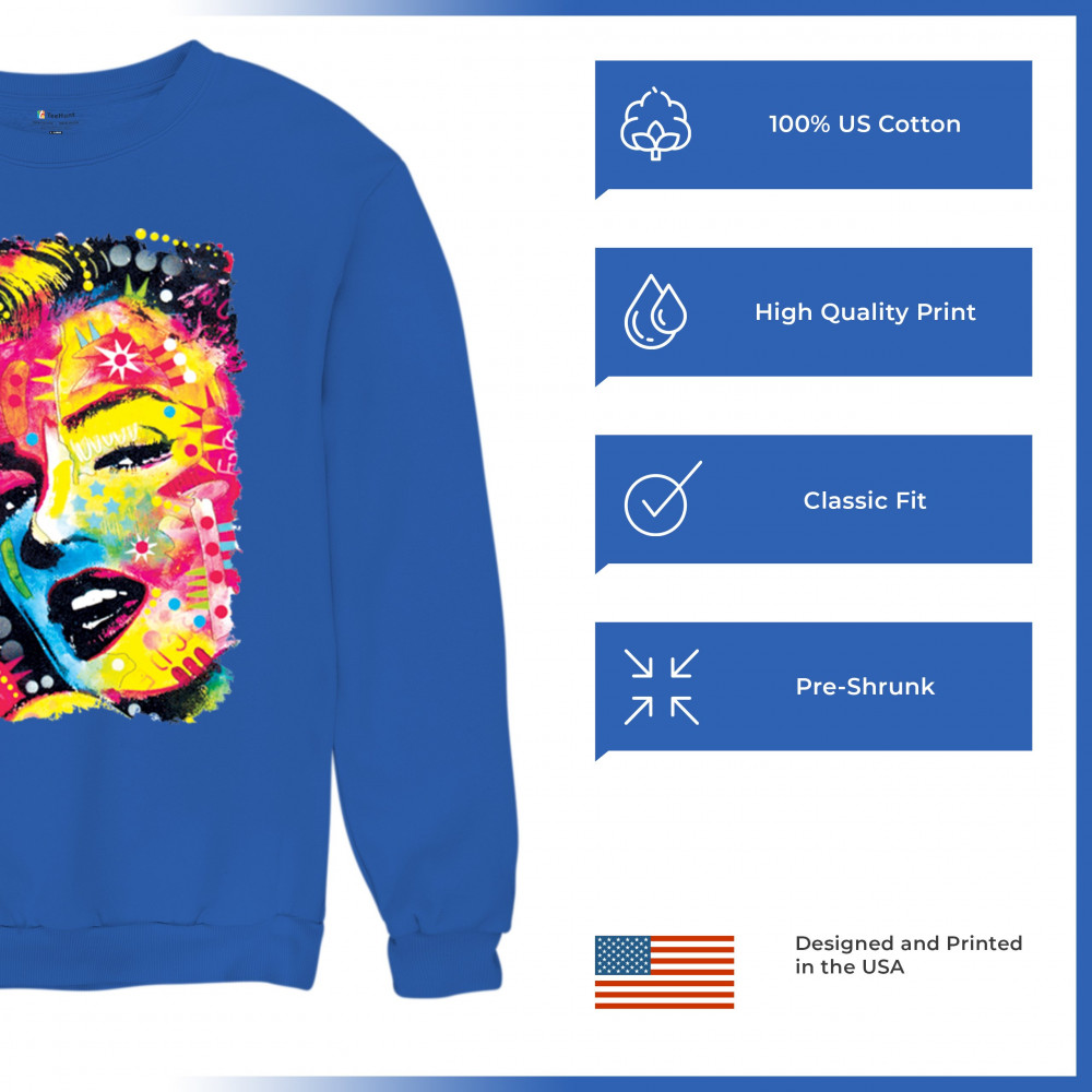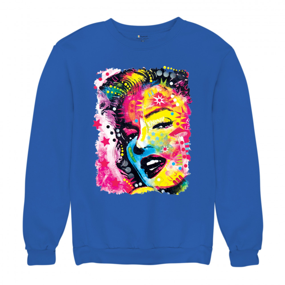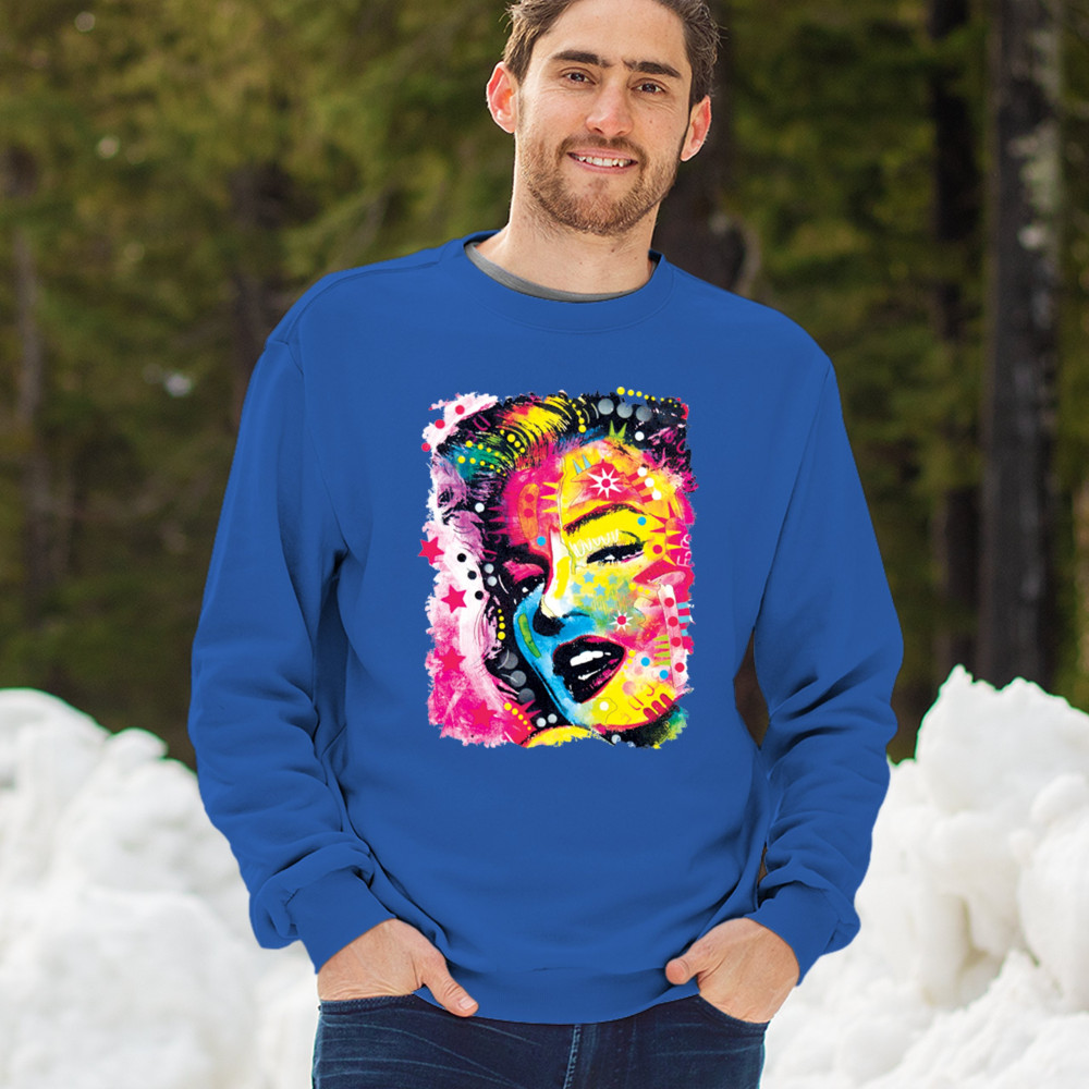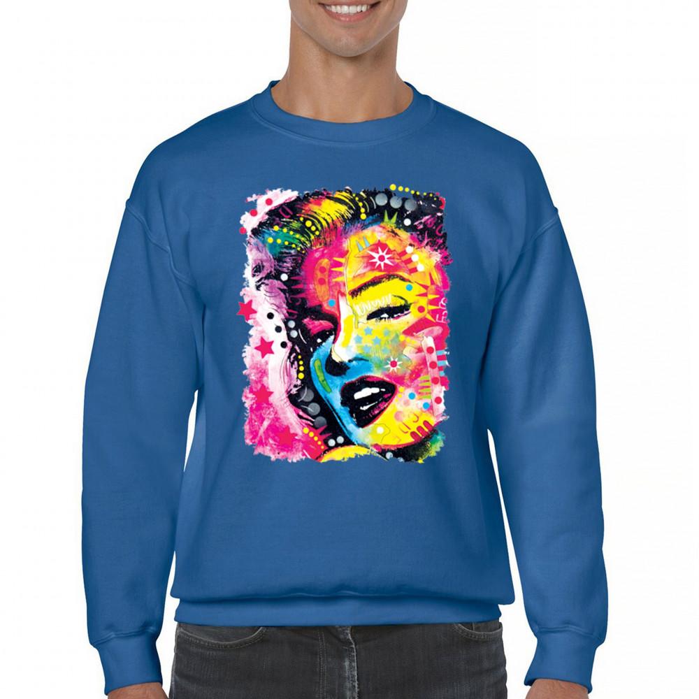 DEAN RUSSO COLORFUL MARILYN sweatshirt neon hot symbol starlet crewneck royal blue