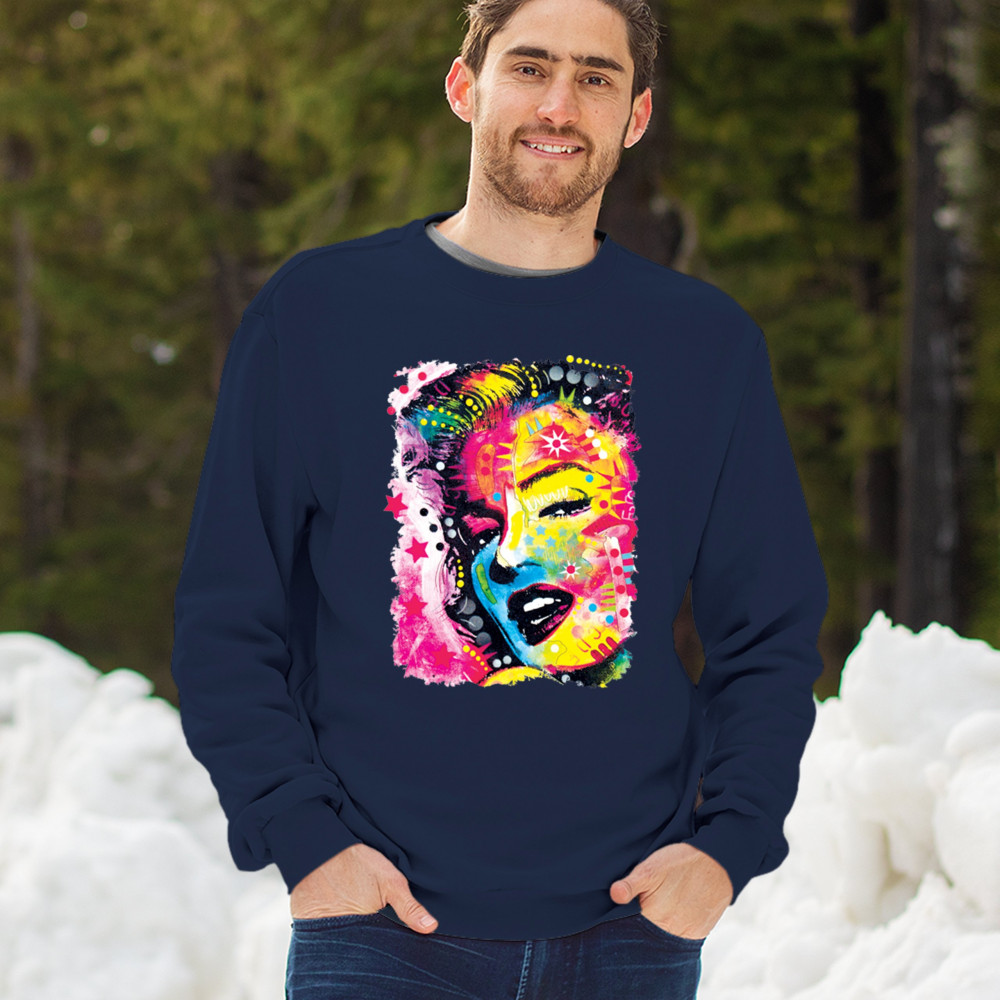 DEAN RUSSO COLORFUL MARILYN sweatshirt neon hot symbol starlet crewneck navy blue