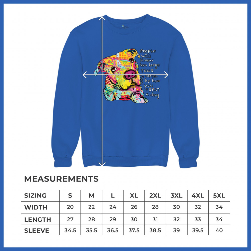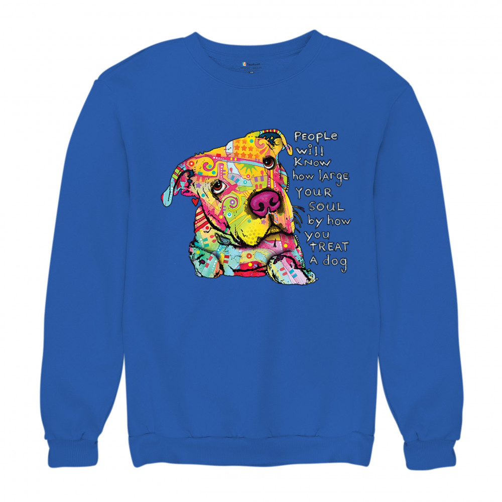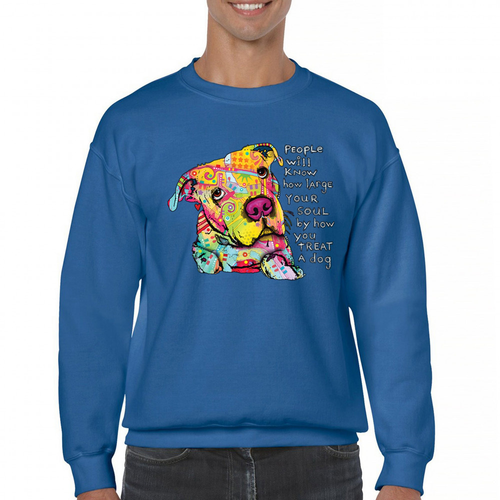 DEAN RUSSO COLORFUL NEON DOG sweatshirt how large your soul is pet crewneck royal blue