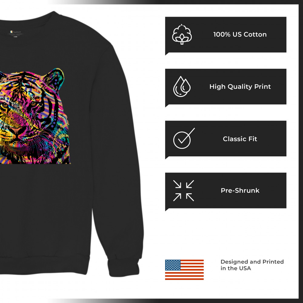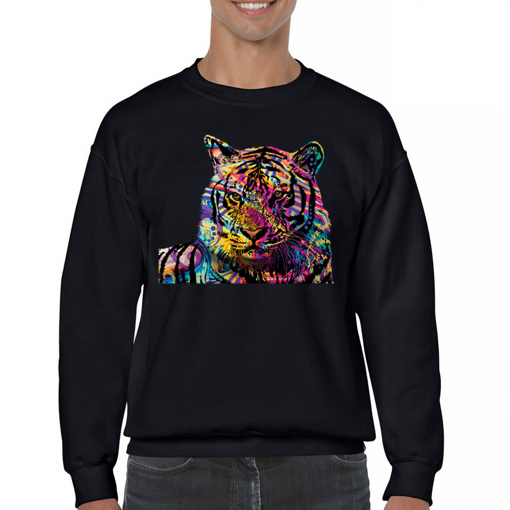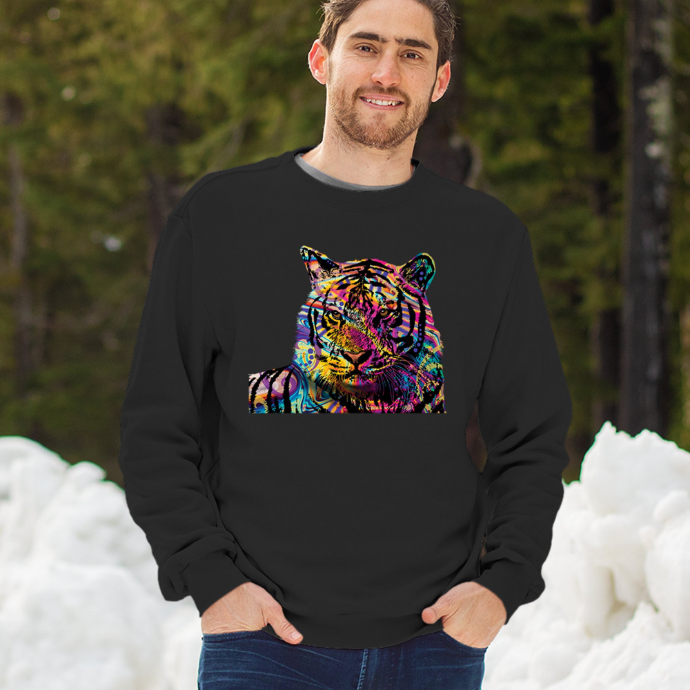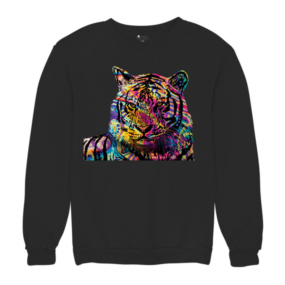 DEAN RUSSO COLORFUL NEON SIBERIAN TIGER sweatshirt wild big cat crewneck black