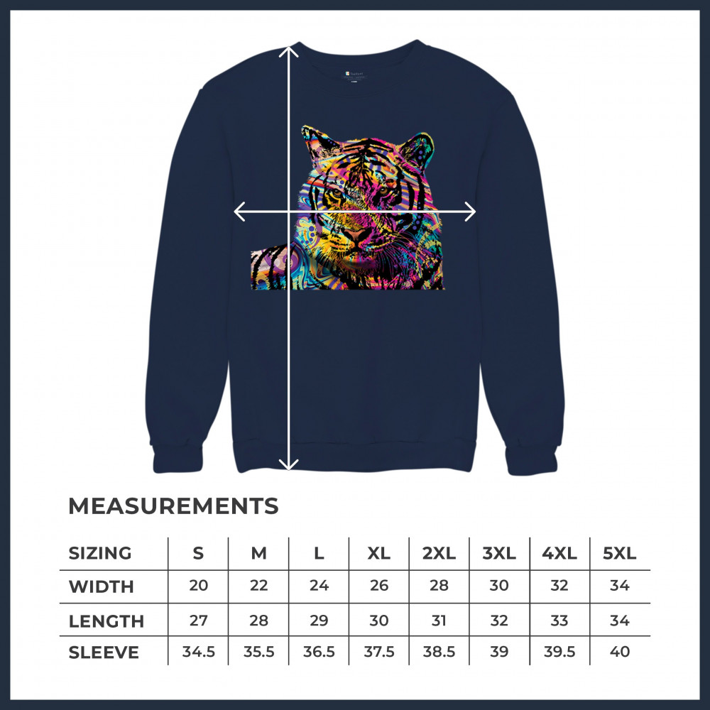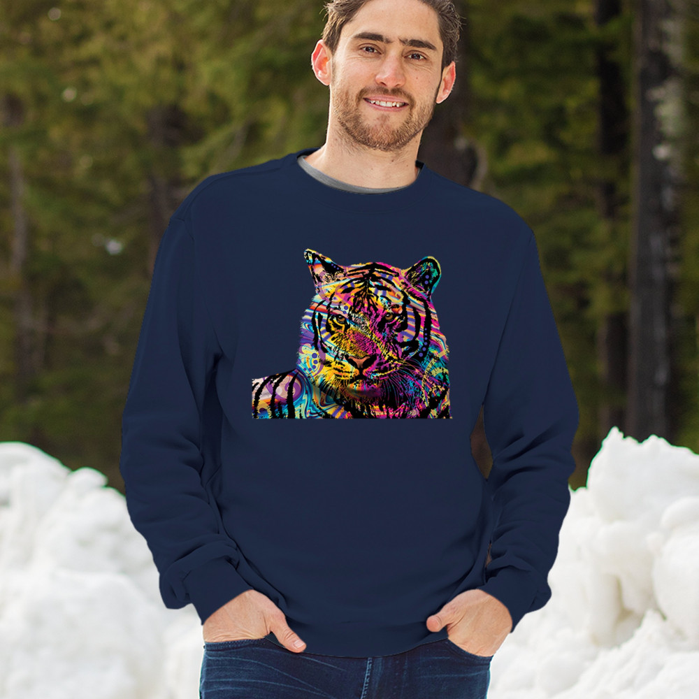 DEAN RUSSO COLORFUL NEON SIBERIAN TIGER sweatshirt wild big cat crewneck navy blue