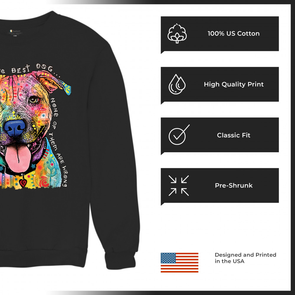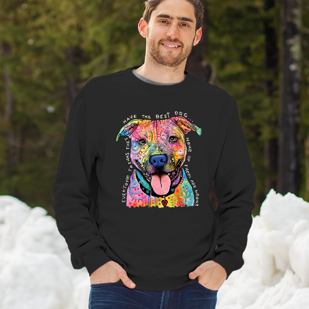 DEAN RUSSO COLORFUL PIT BULL sweatshirt everyone has best dogs crewneck black