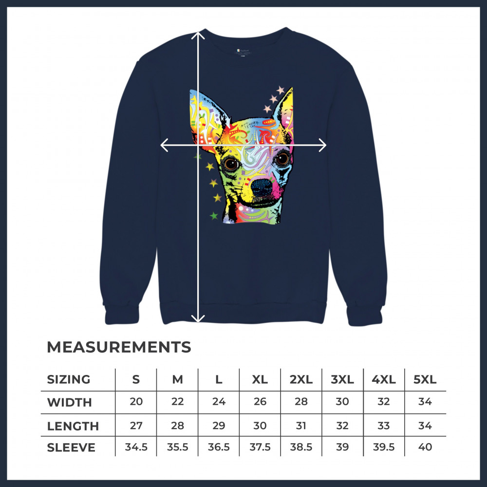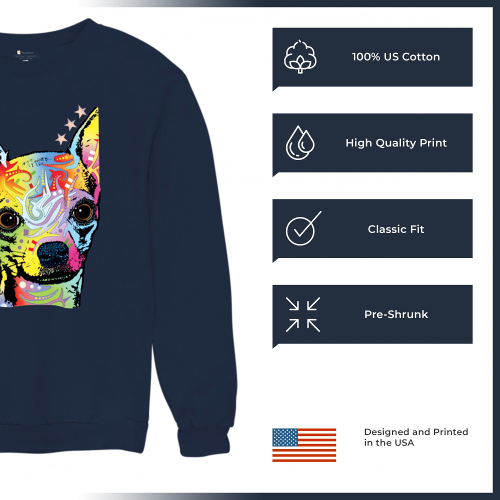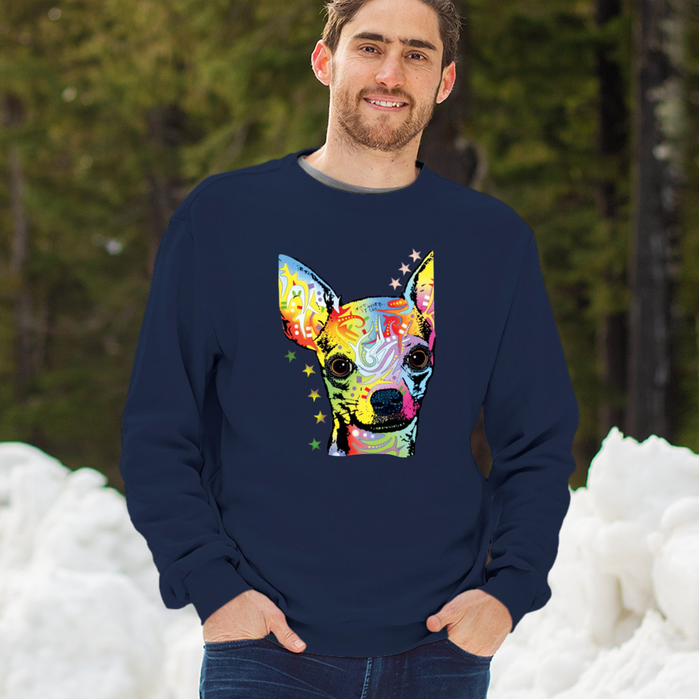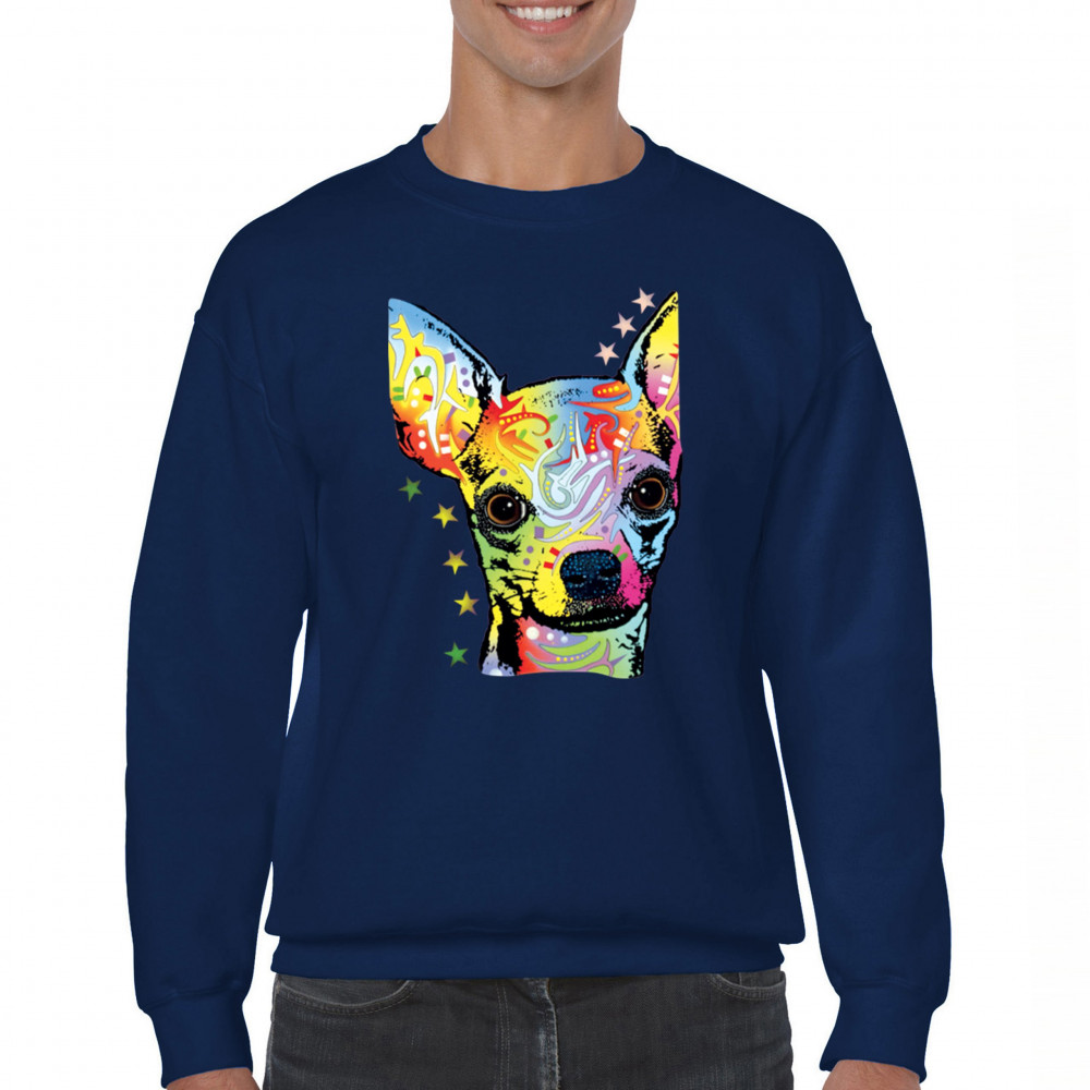DEAN RUSSO CUTE CHIHUAHUA sweatshirt neon colorful small dog pet crewneck navy blue