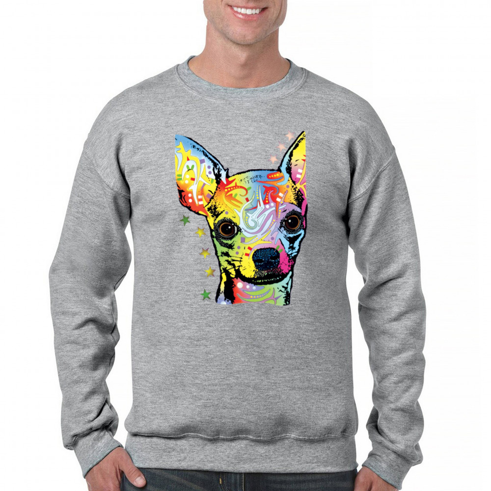 DEAN RUSSO CUTE CHIHUAHUA sweatshirt neon colorful small dog pet crewneck gray