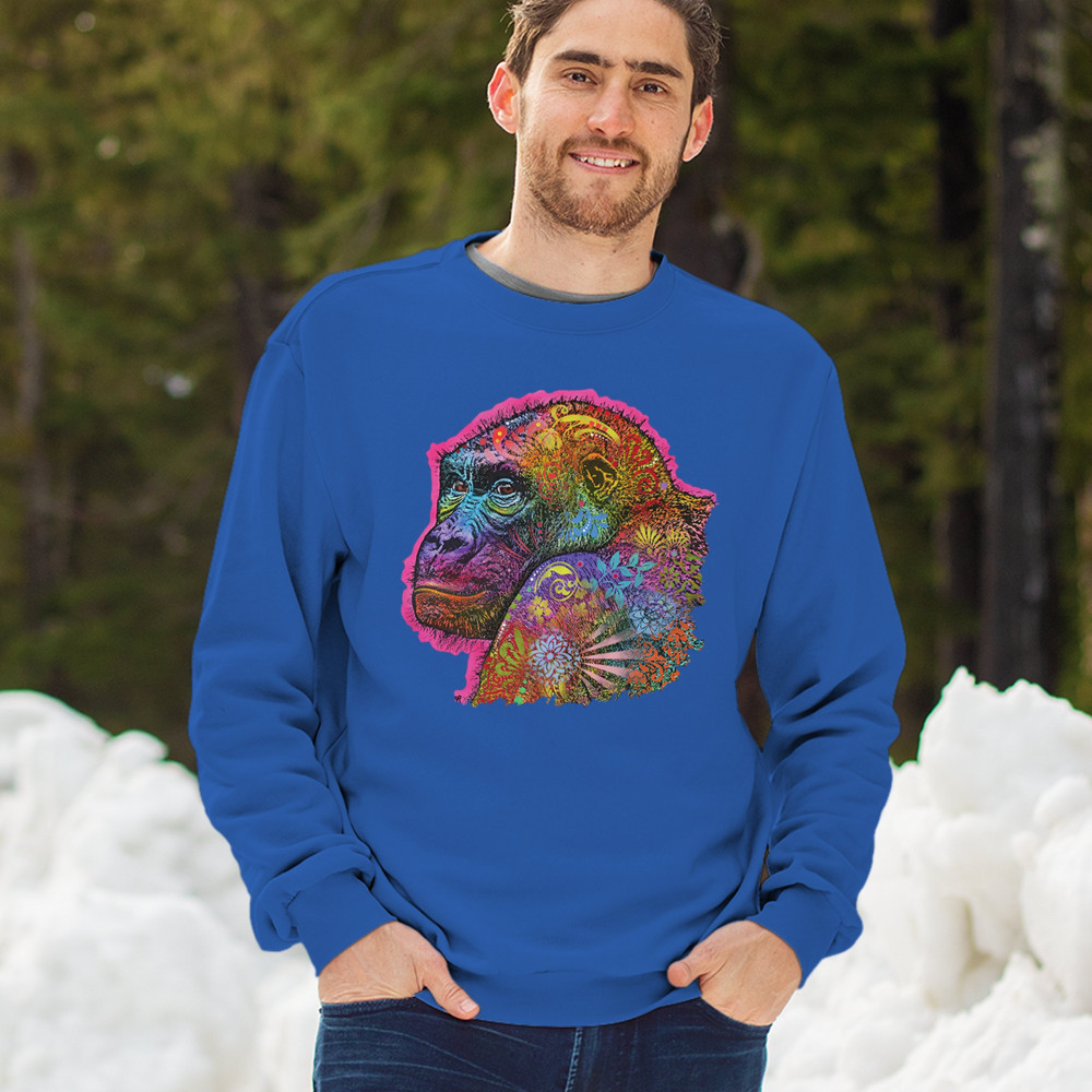 DEAN RUSSO CUTE GORILLA sweatshirt colorful neon silverback ape art crewneck royal blue