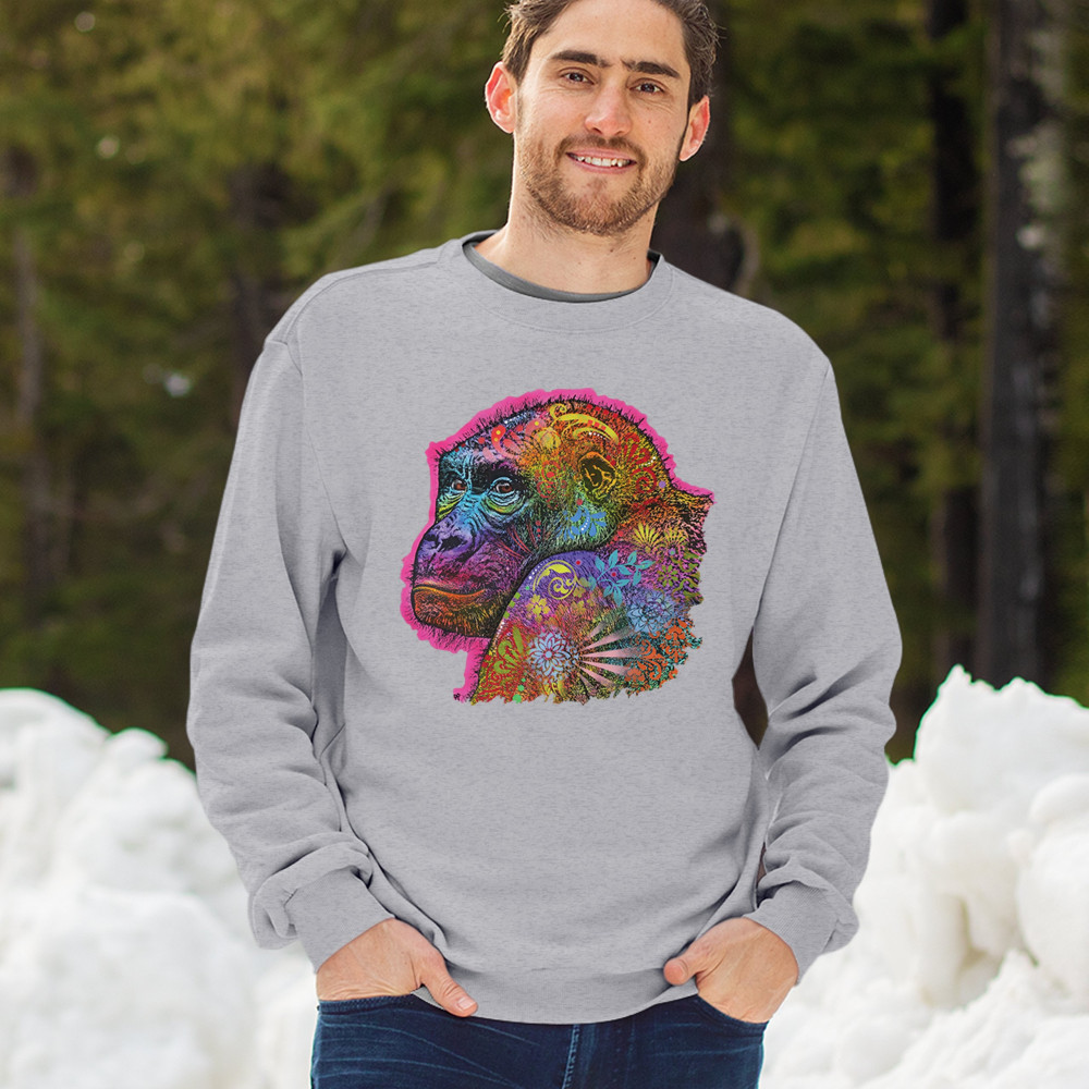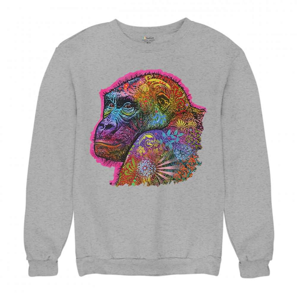 DEAN RUSSO CUTE GORILLA sweatshirt colorful neon silverback ape art crewneck gray