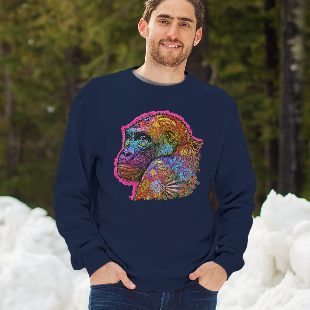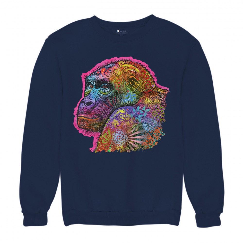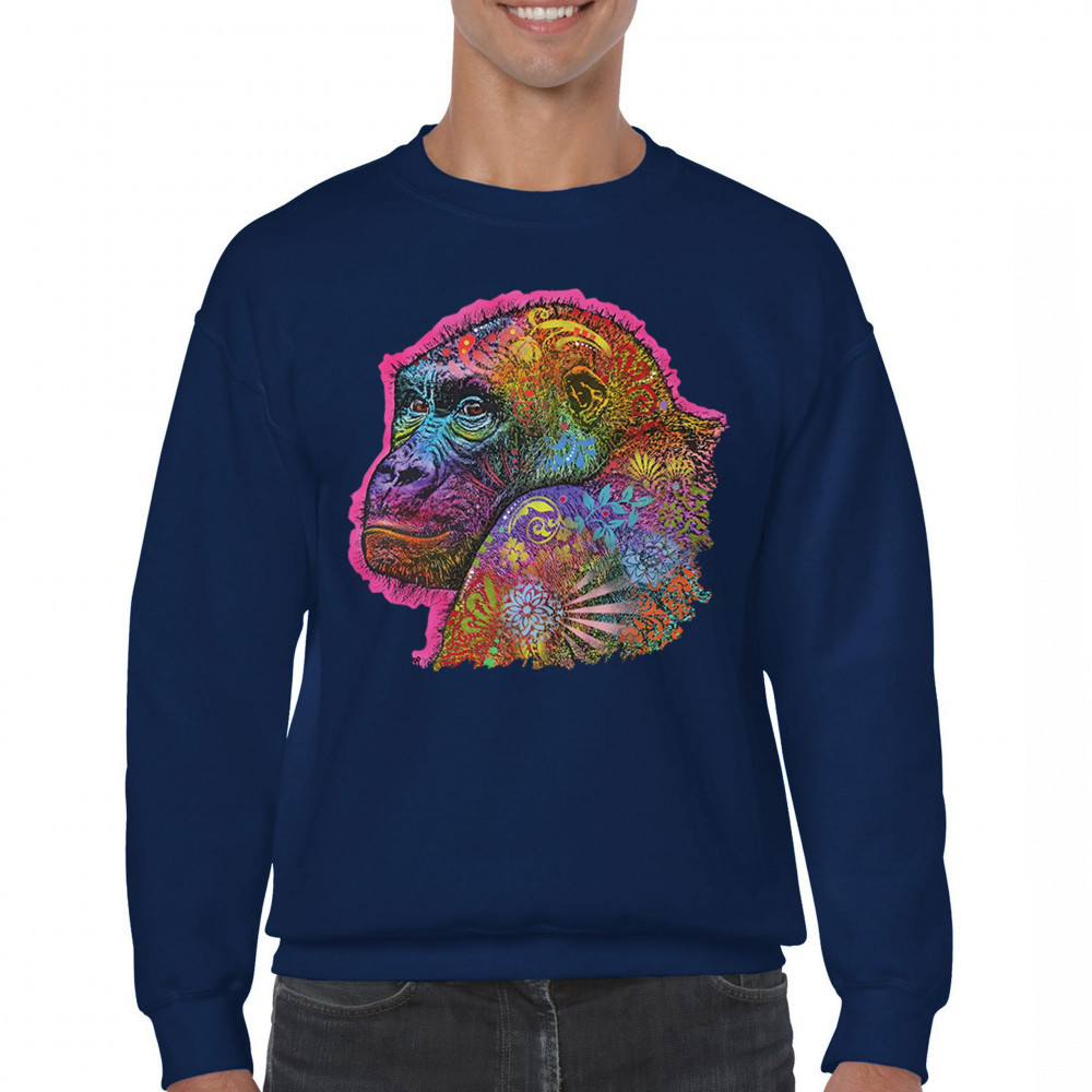 DEAN RUSSO CUTE GORILLA sweatshirt colorful neon silverback ape art crewneck navy blue
