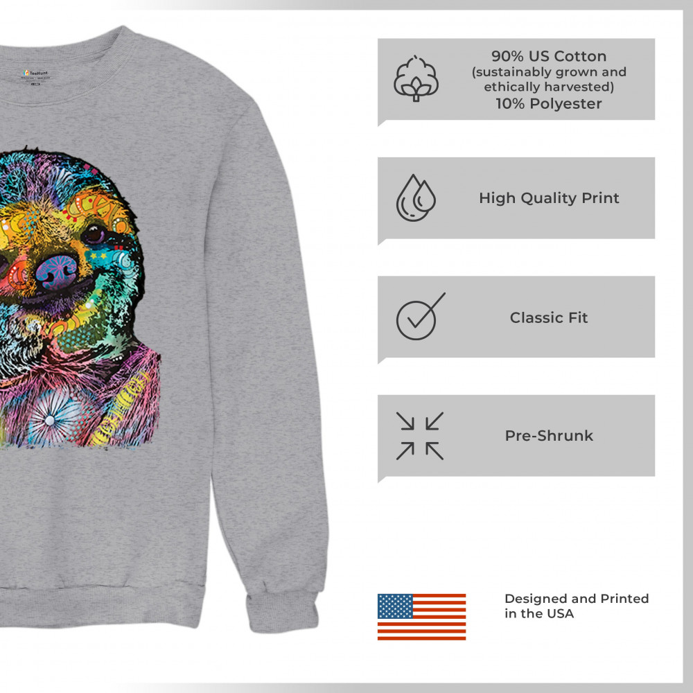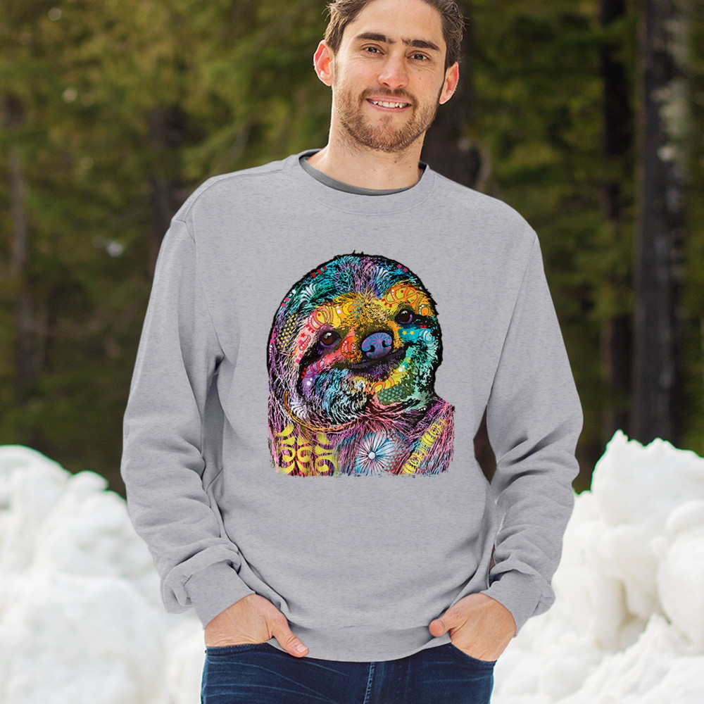 DEAN RUSSO CUTE LAZY SLOTH sweatshirt funny wild life colorful crewneck gray