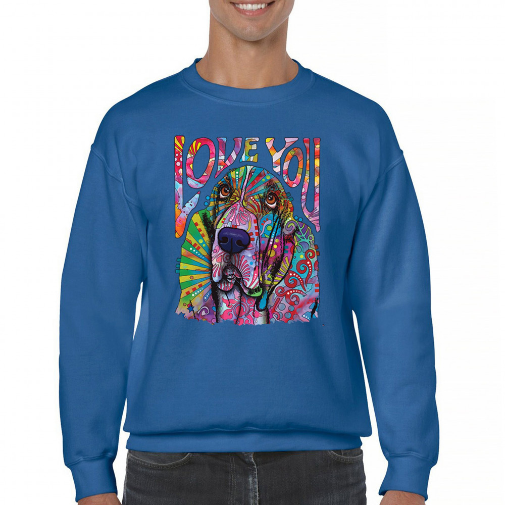 DEAN RUSSO CUTE LOVE YOU BASSET sweatshirt colorful dog neon pet crewneck royal blue