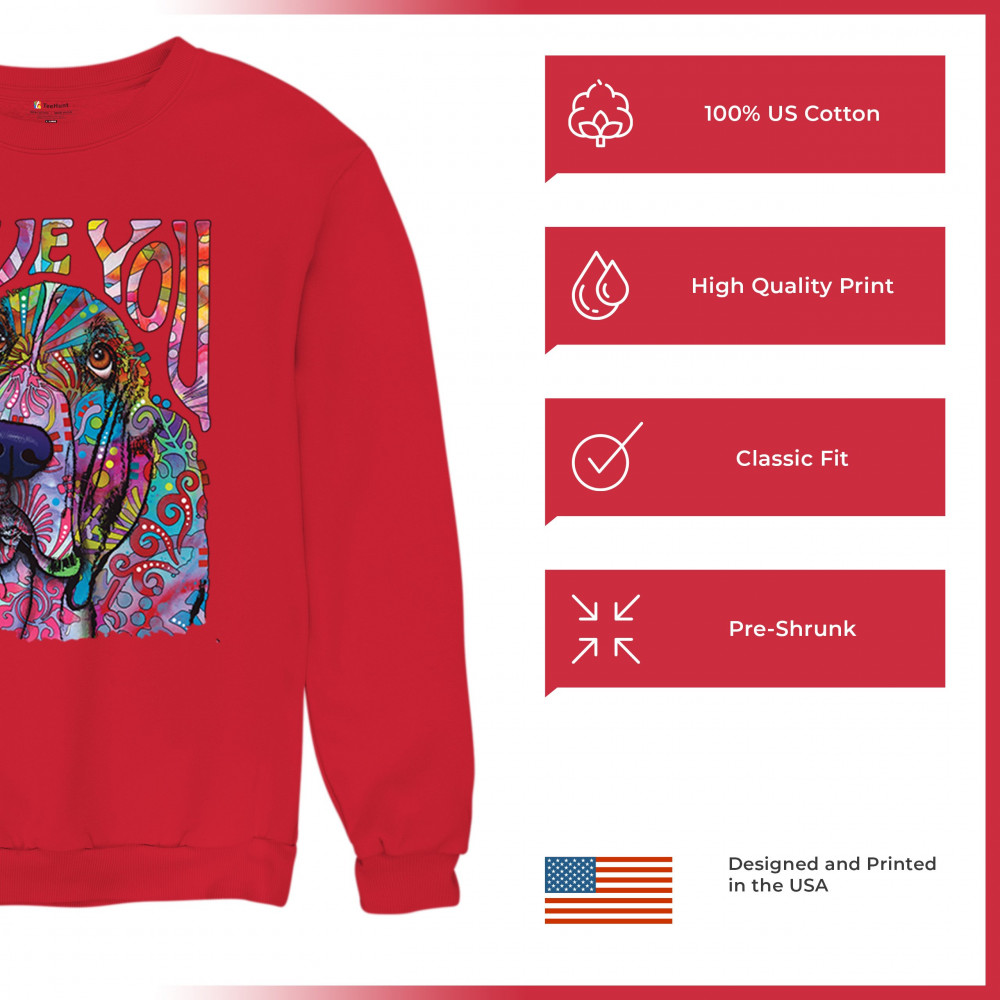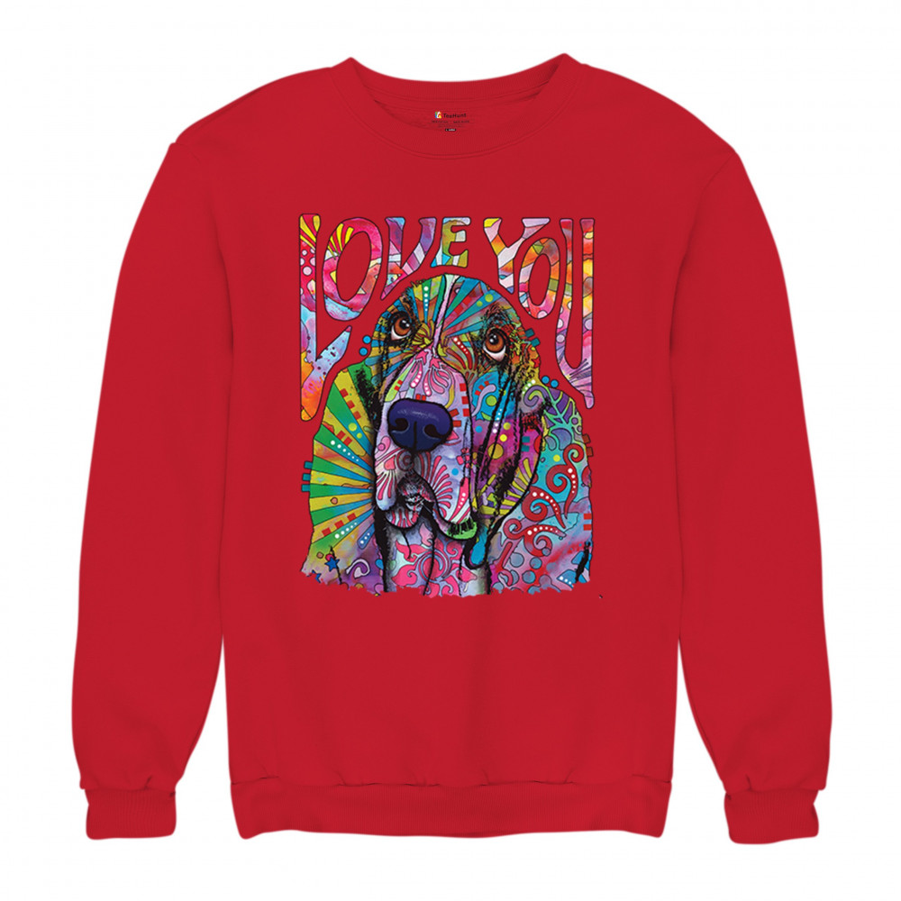 DEAN RUSSO CUTE LOVE YOU BASSET sweatshirt colorful dog neon pet crewneck red