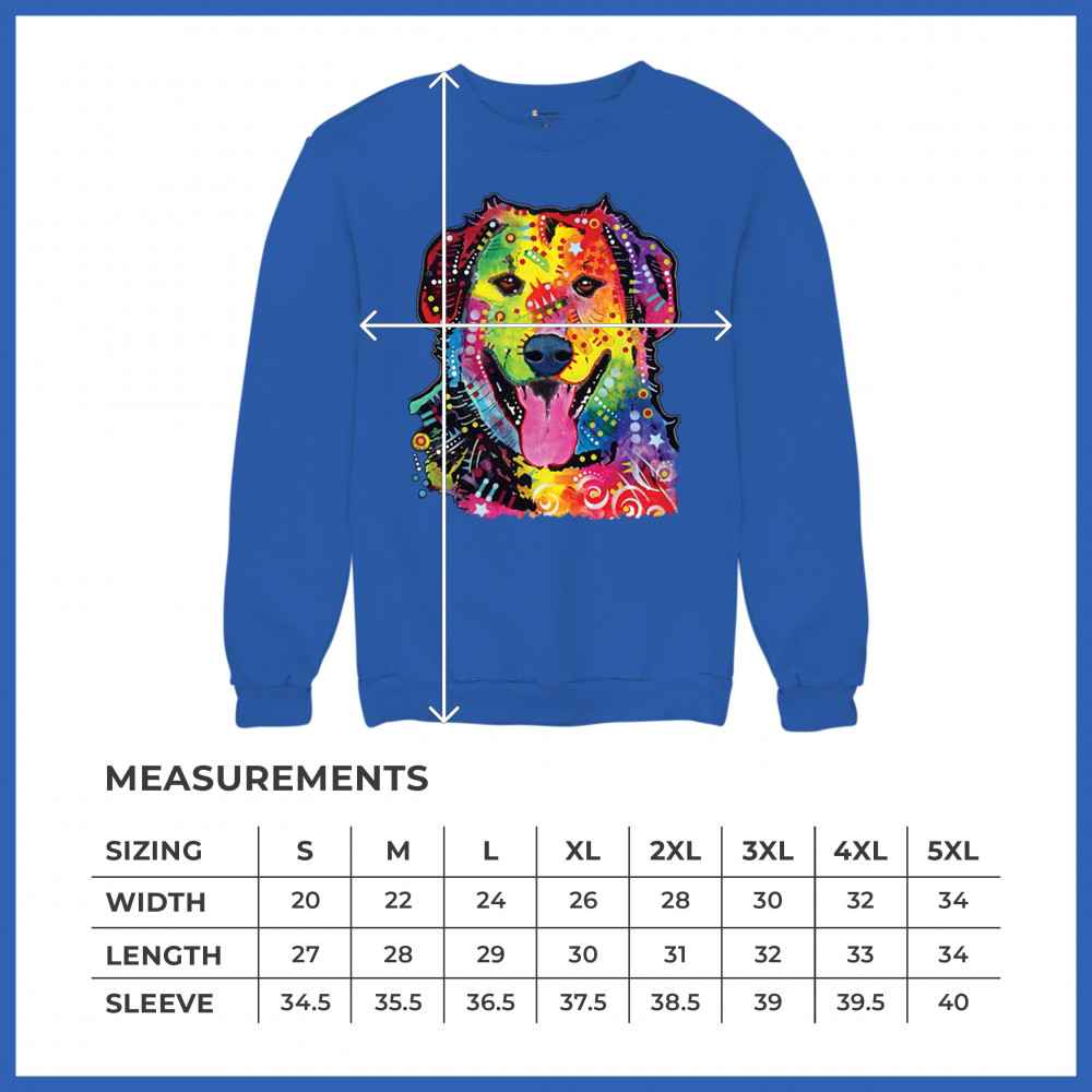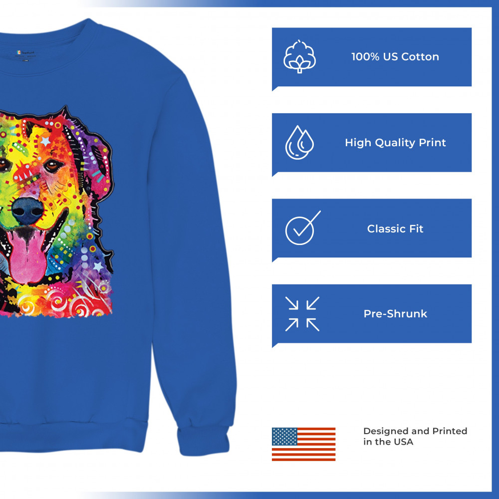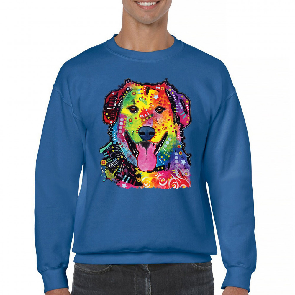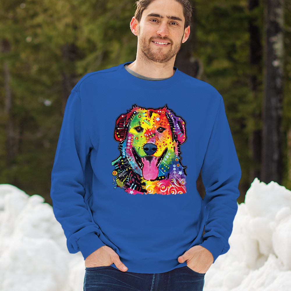 DEAN RUSSO CUTE NEON DOG sweatshirt rescue adopt a pet colorful pet crewneck royal blue