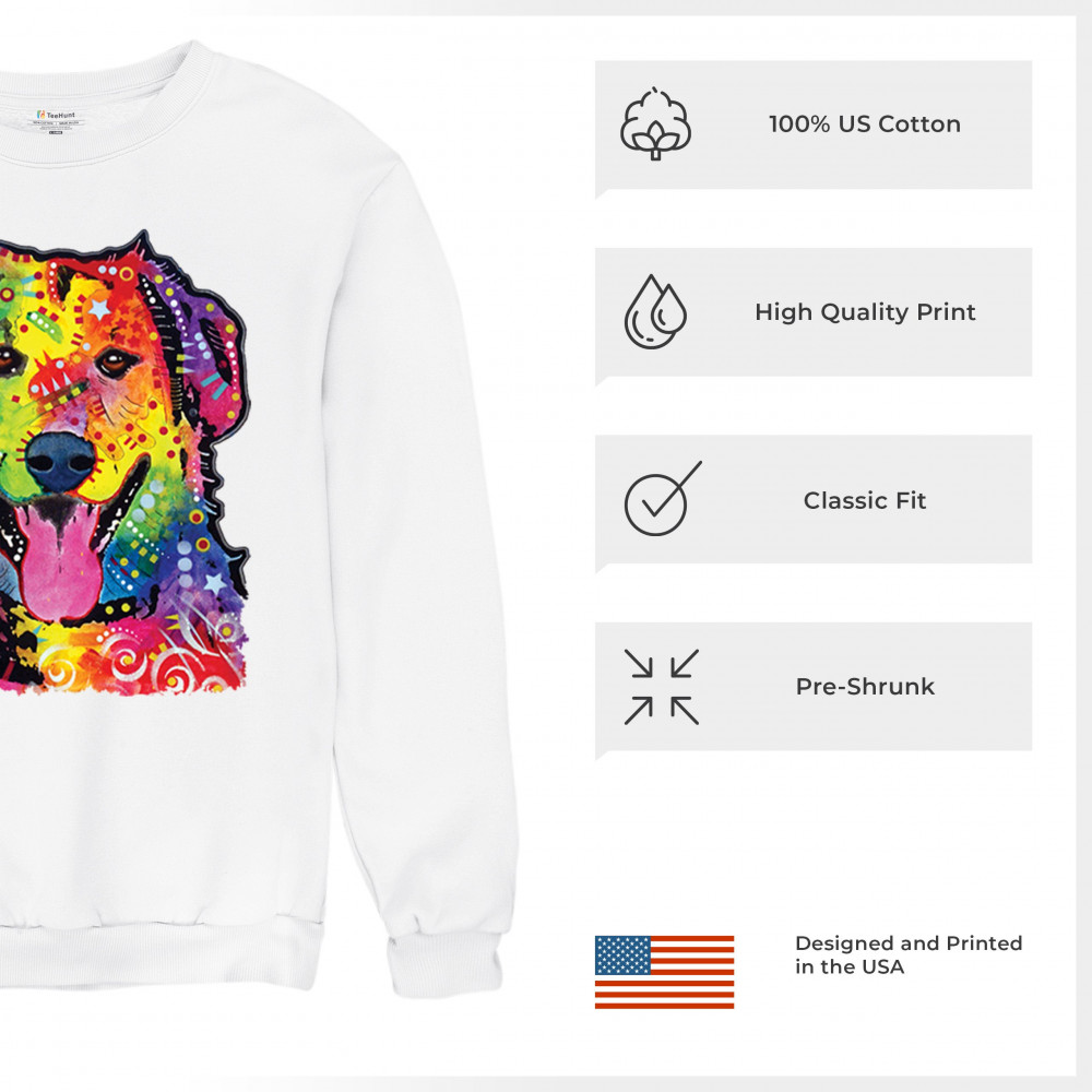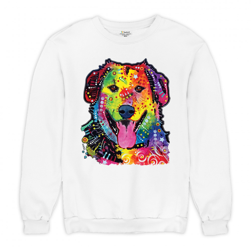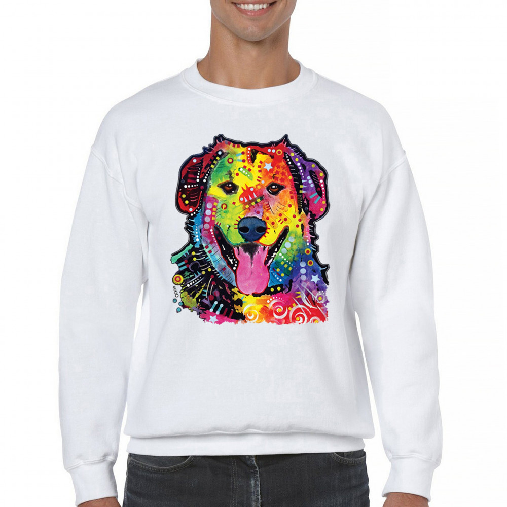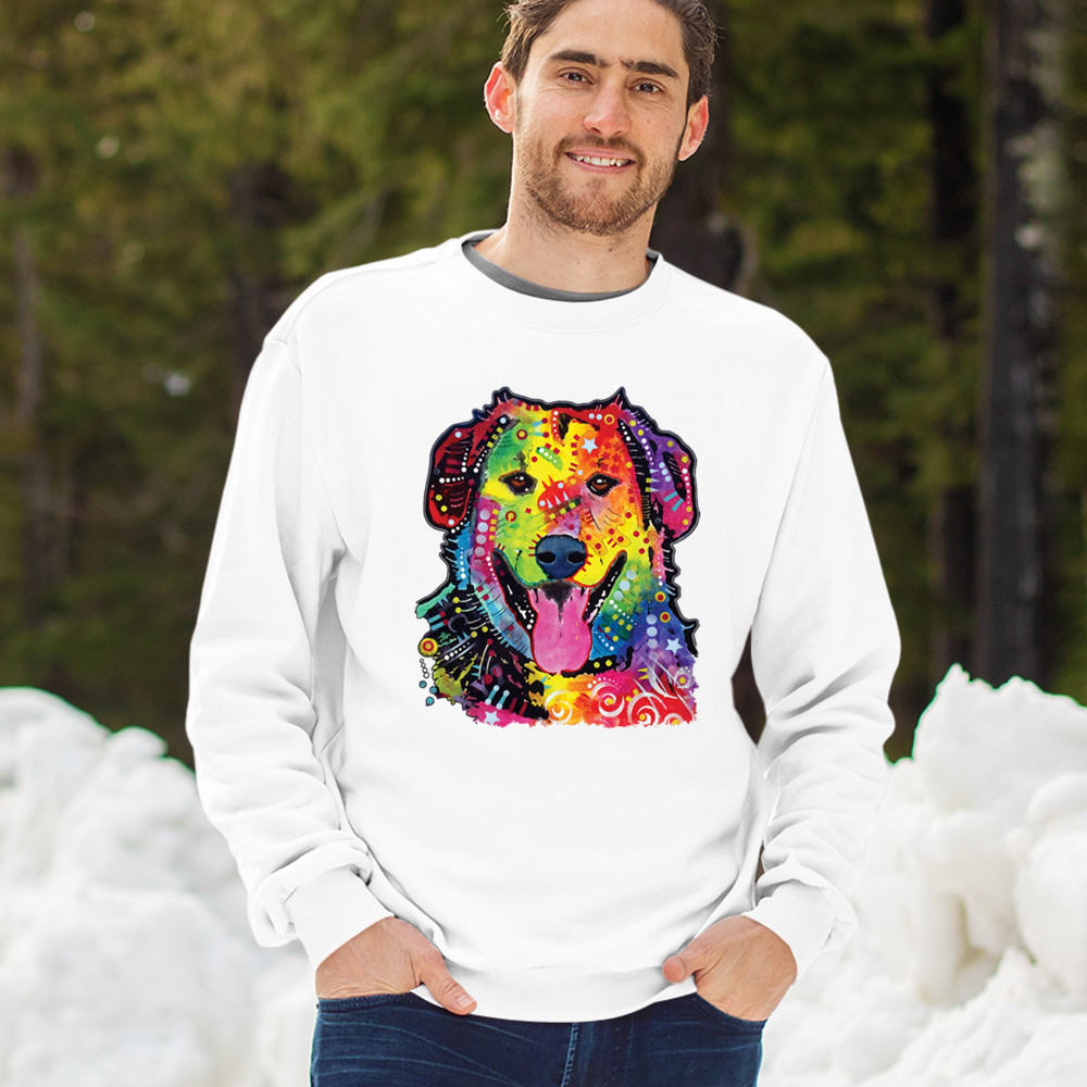 DEAN RUSSO CUTE NEON DOG sweatshirt rescue adopt a pet colorful pet crewneck white