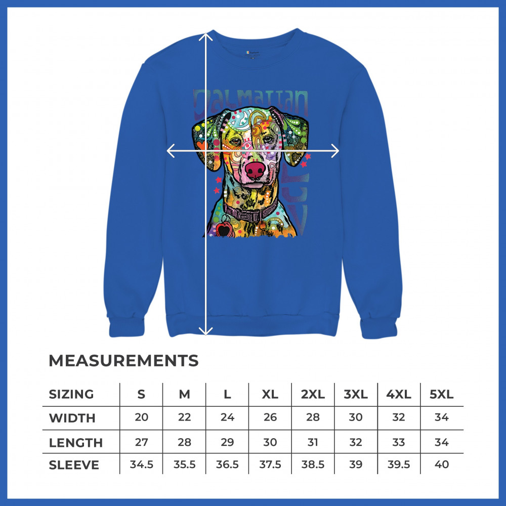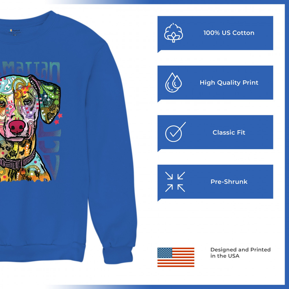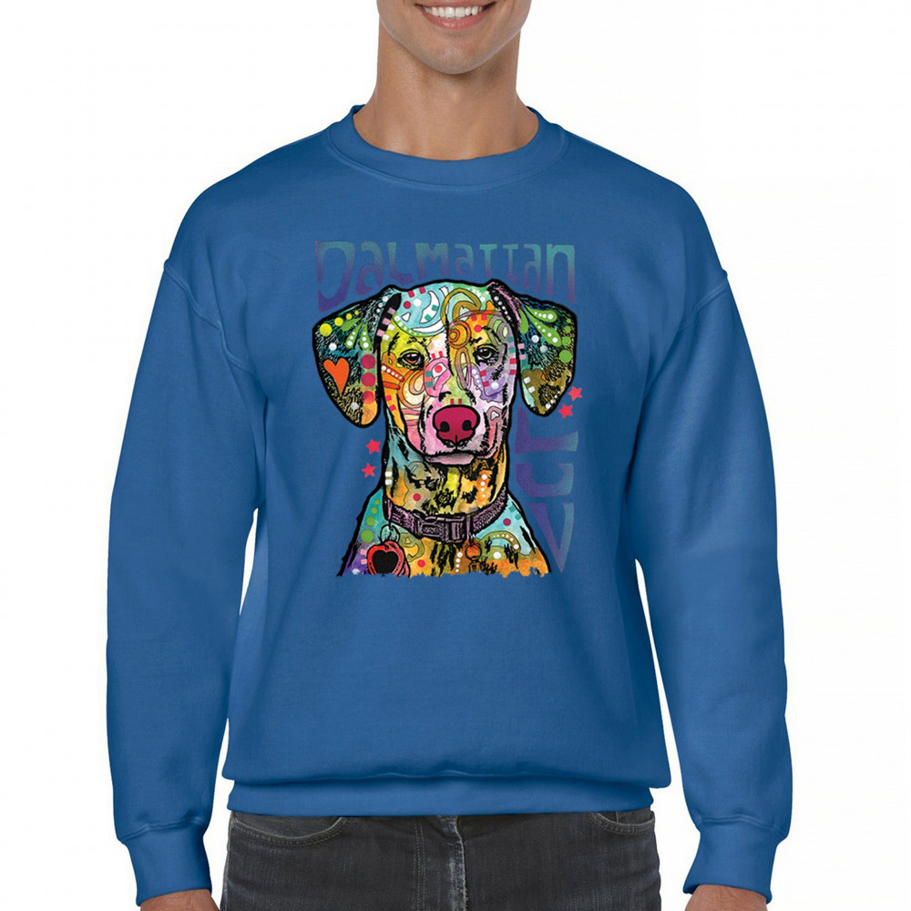 DEAN RUSSO DALMATIAN LUV COLORFUL DOG sweatshirt neon puppy lover crewneck royal blue