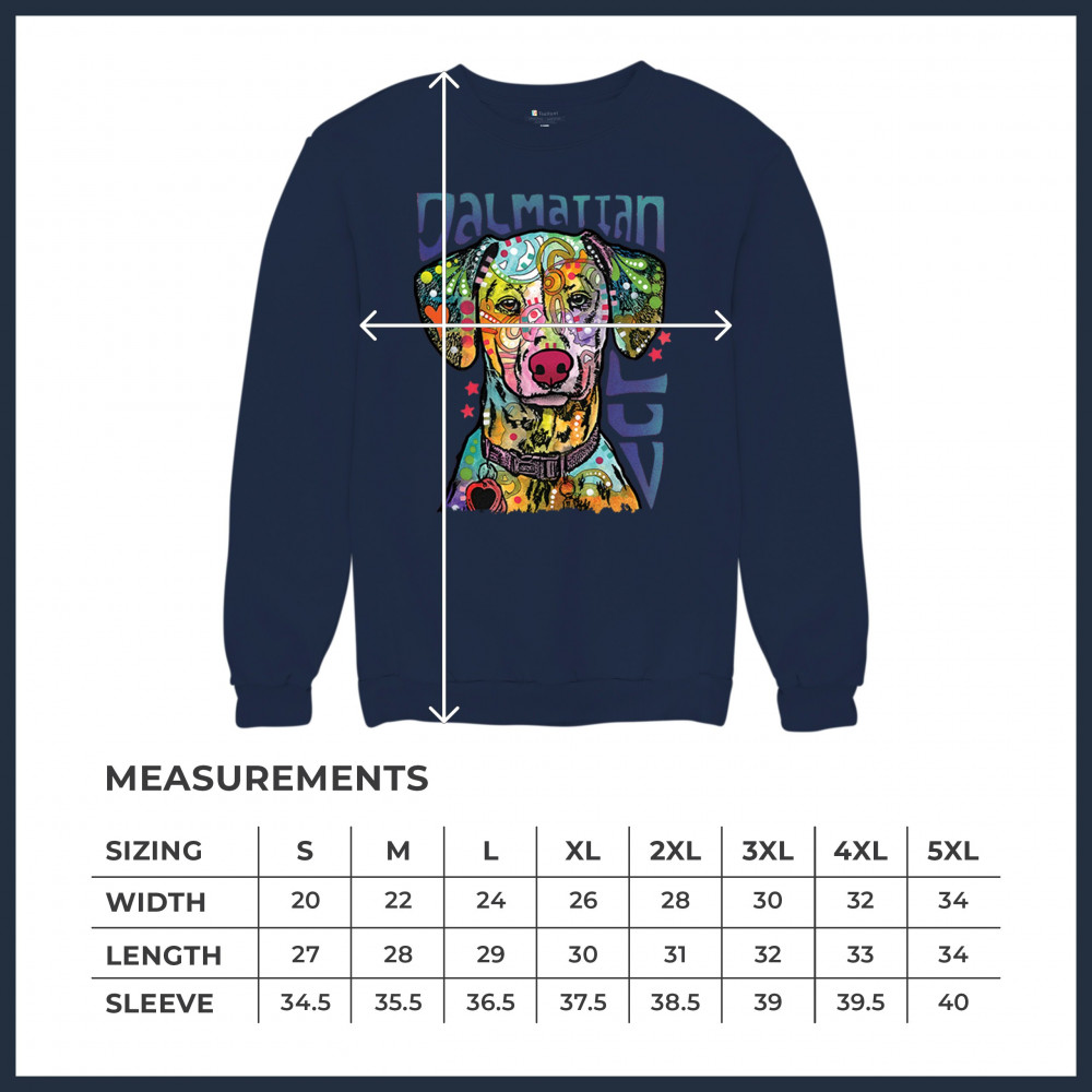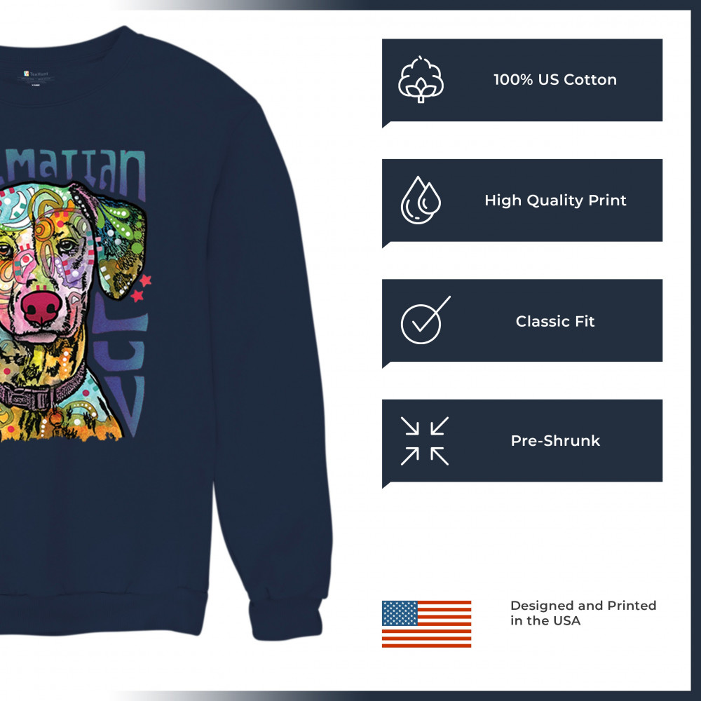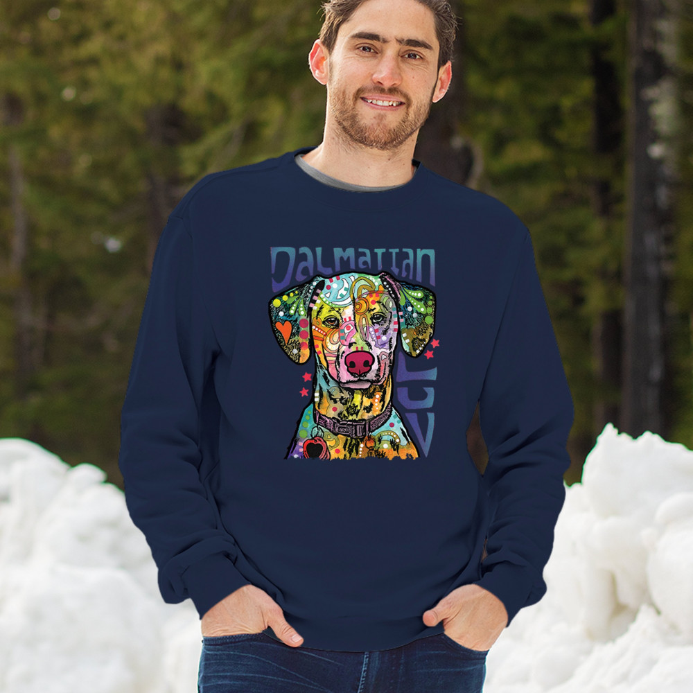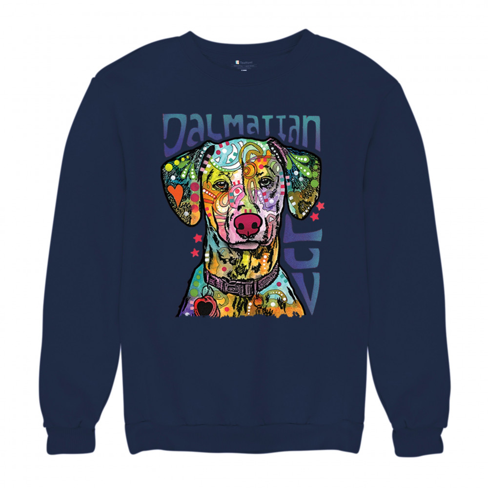 DEAN RUSSO DALMATIAN LUV COLORFUL DOG sweatshirt neon puppy lover crewneck navy blue