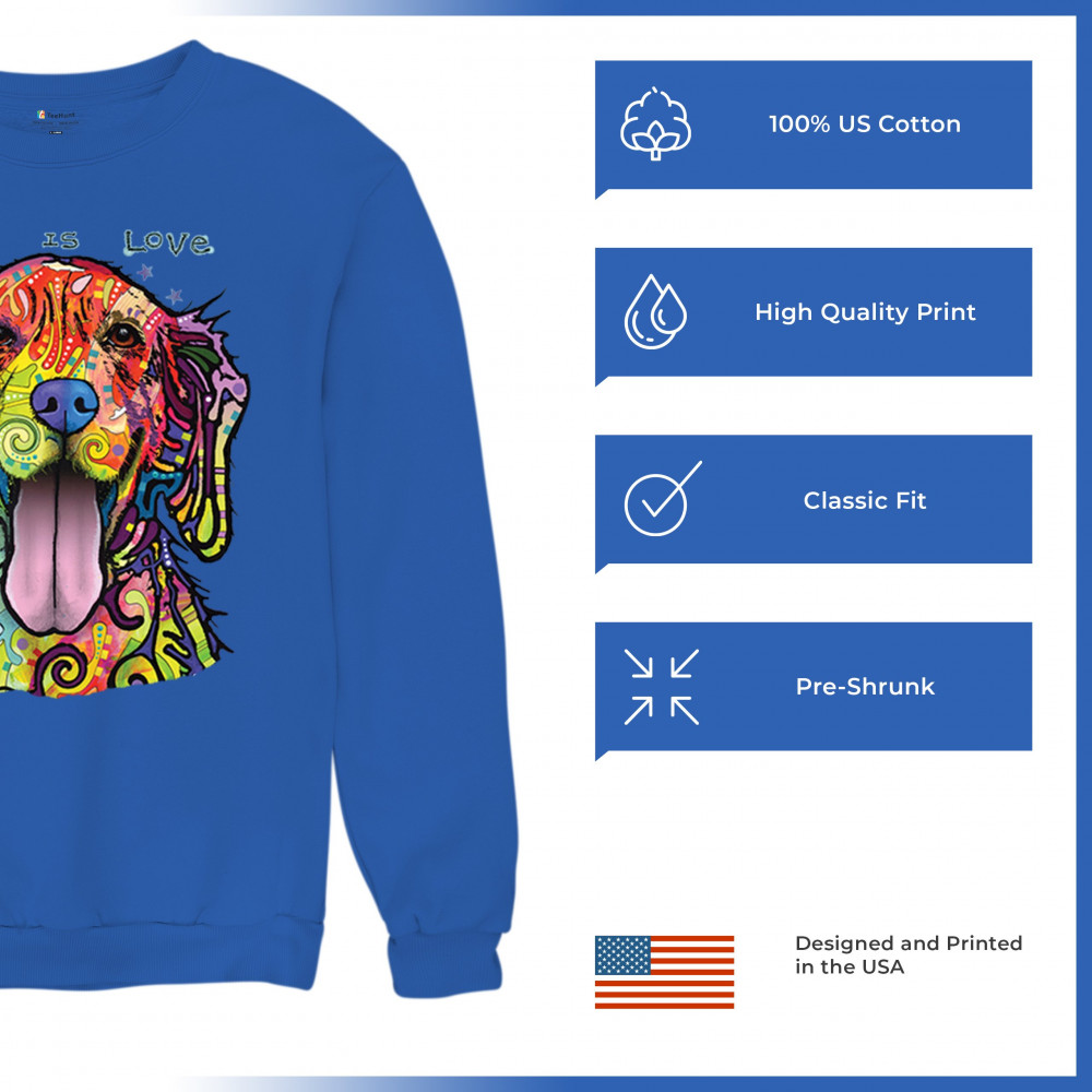 DEAN RUSSO DOG IS LOVE LABRADOR RETRIEVER sweatshirt happy pet crewneck royal blue