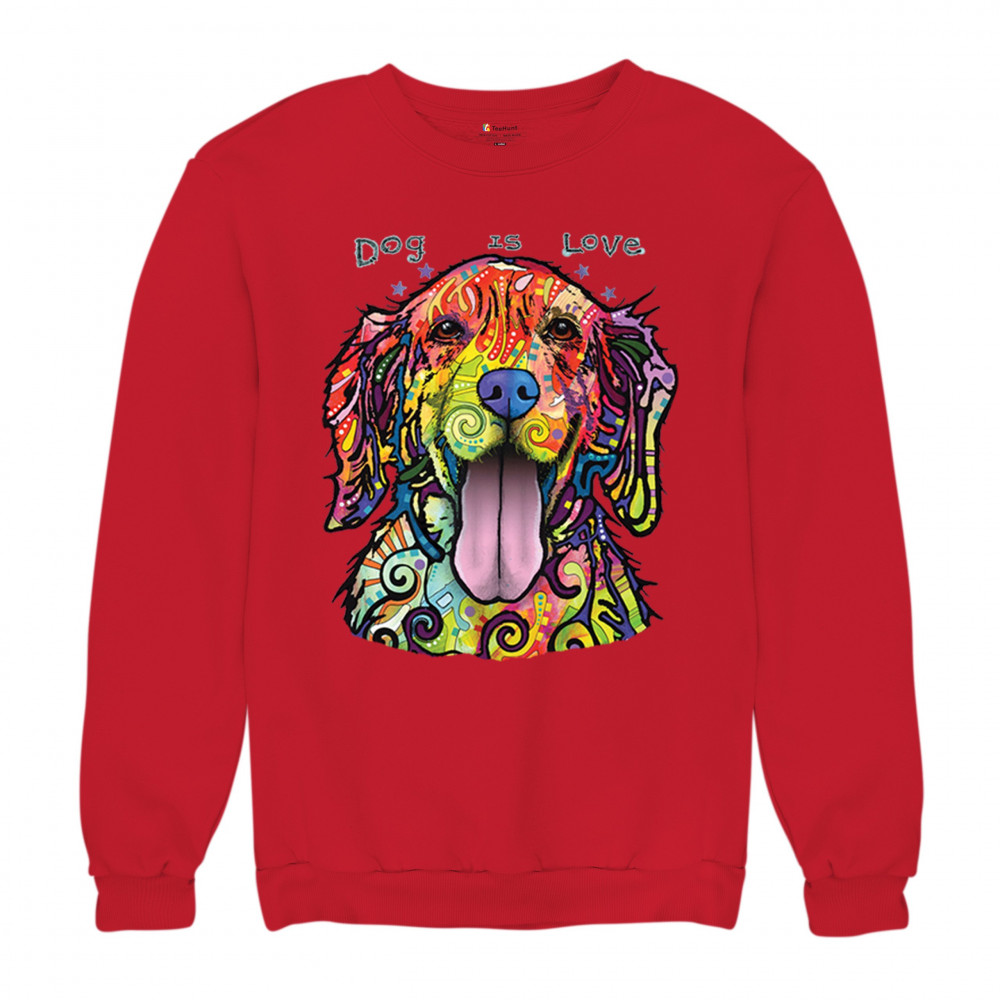 DEAN RUSSO DOG IS LOVE LABRADOR RETRIEVER sweatshirt happy pet crewneck red