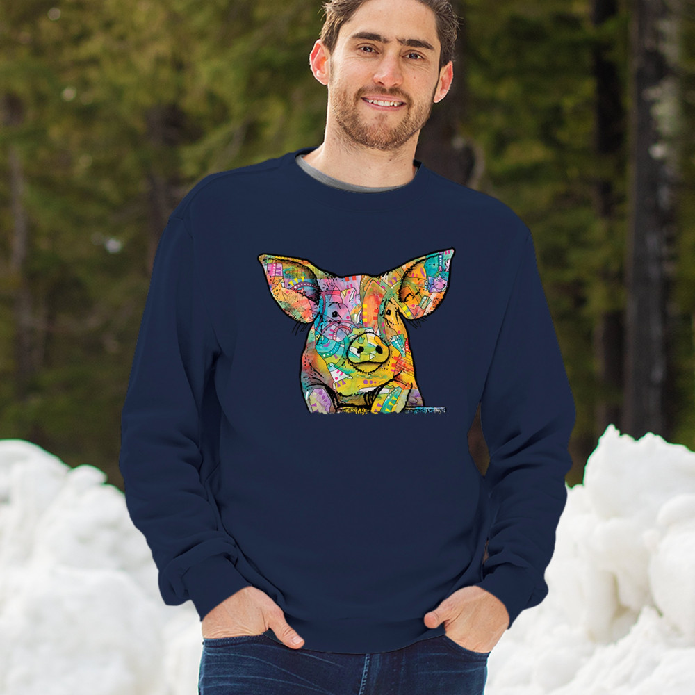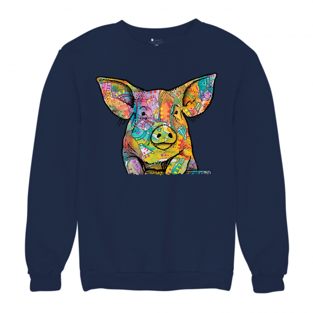 DEAN RUSSO FUNNY CUTE PIG sweatshirt farm piglet lover barn crewneck navy blue