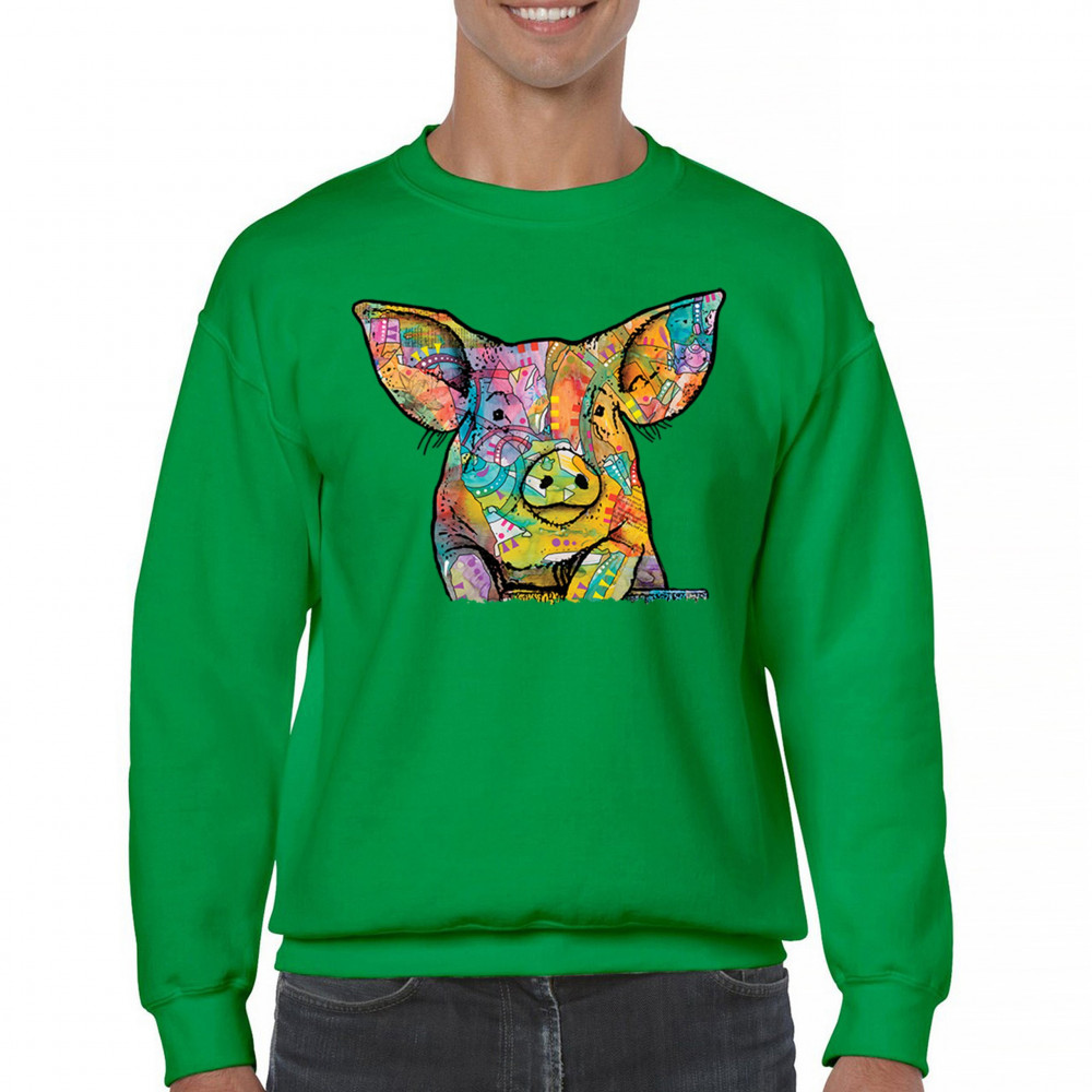 DEAN RUSSO FUNNY CUTE PIG sweatshirt farm piglet lover barn crewneck green