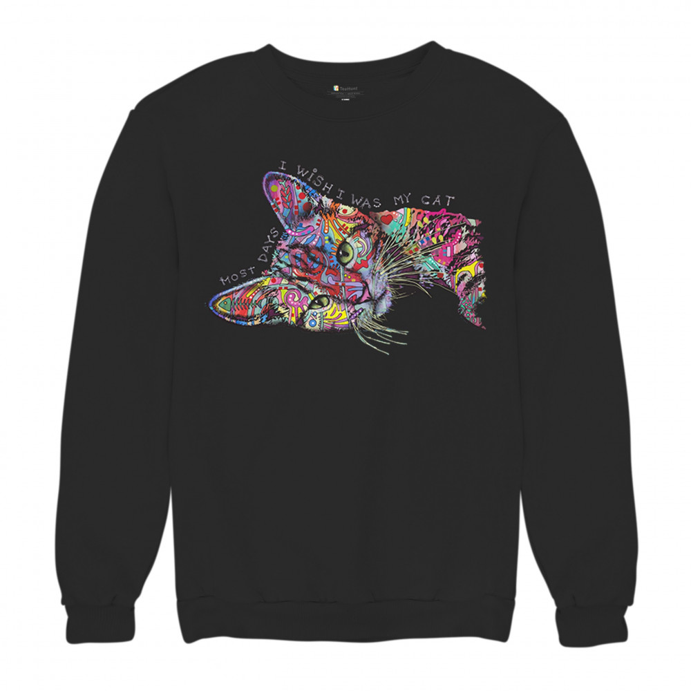 DEAN RUSSO MOST DAYS I WISH I WAS MY CAT sweatshirt cute kitten meow crewneck black