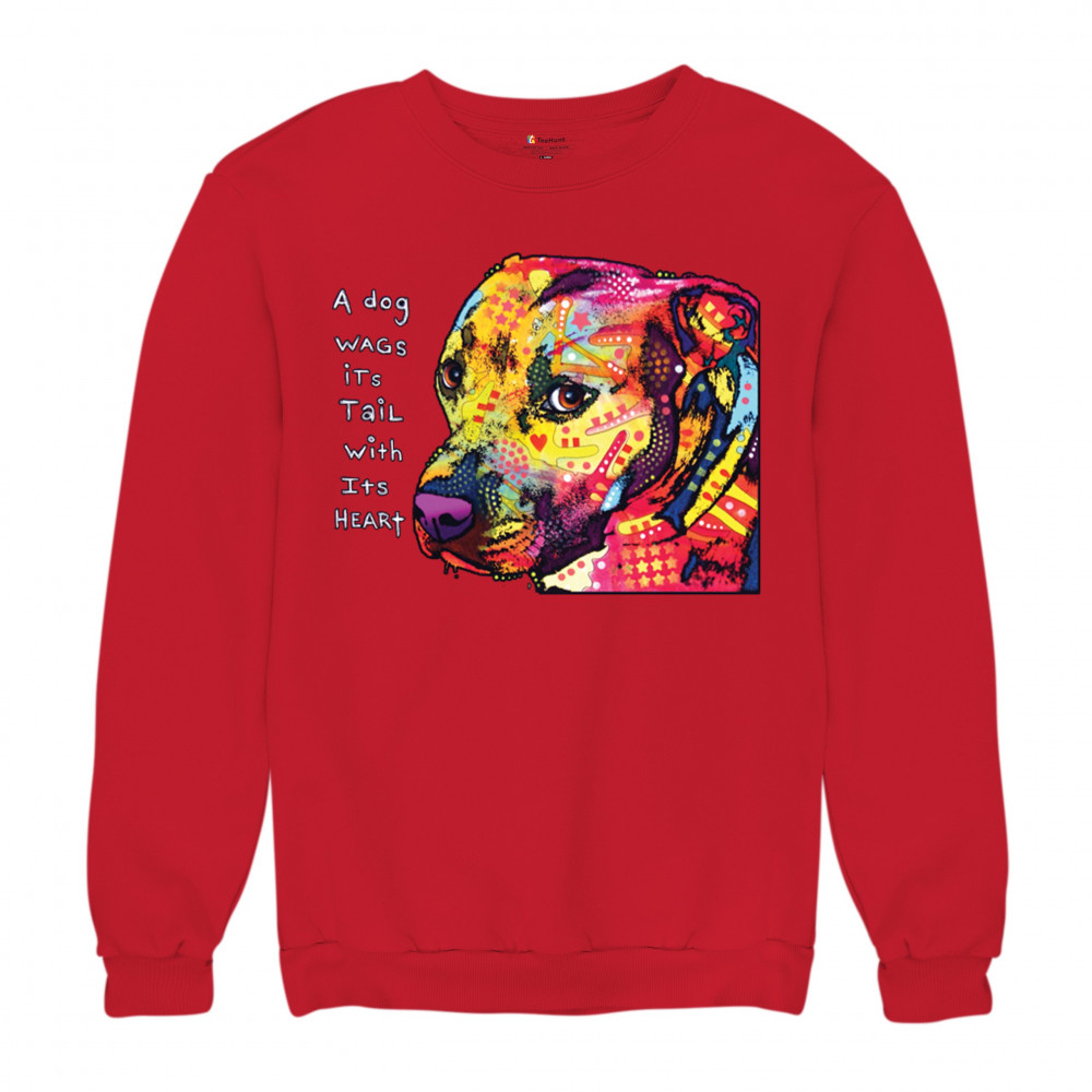 DEAN RUSSO PIT BULL sweatshirt dog wags its tail with its heart crewneck red