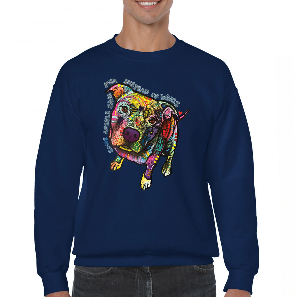 DEAN RUSSO PIT BULL sweatshirt some angels have fur instead of wings crewneck navy blue