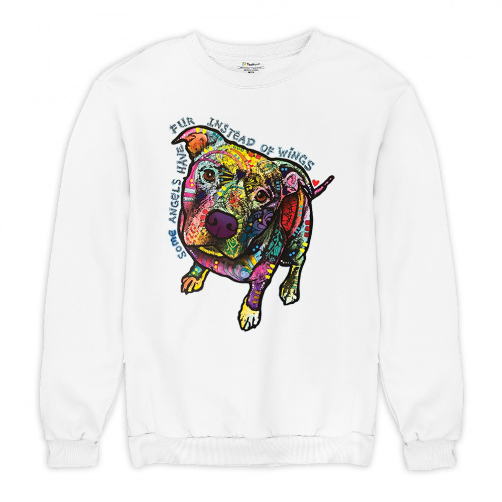 DEAN RUSSO PIT BULL sweatshirt some angels have fur instead of wings crewneck white