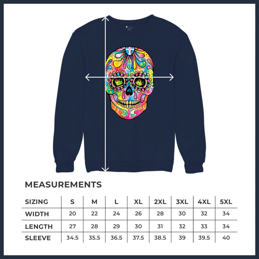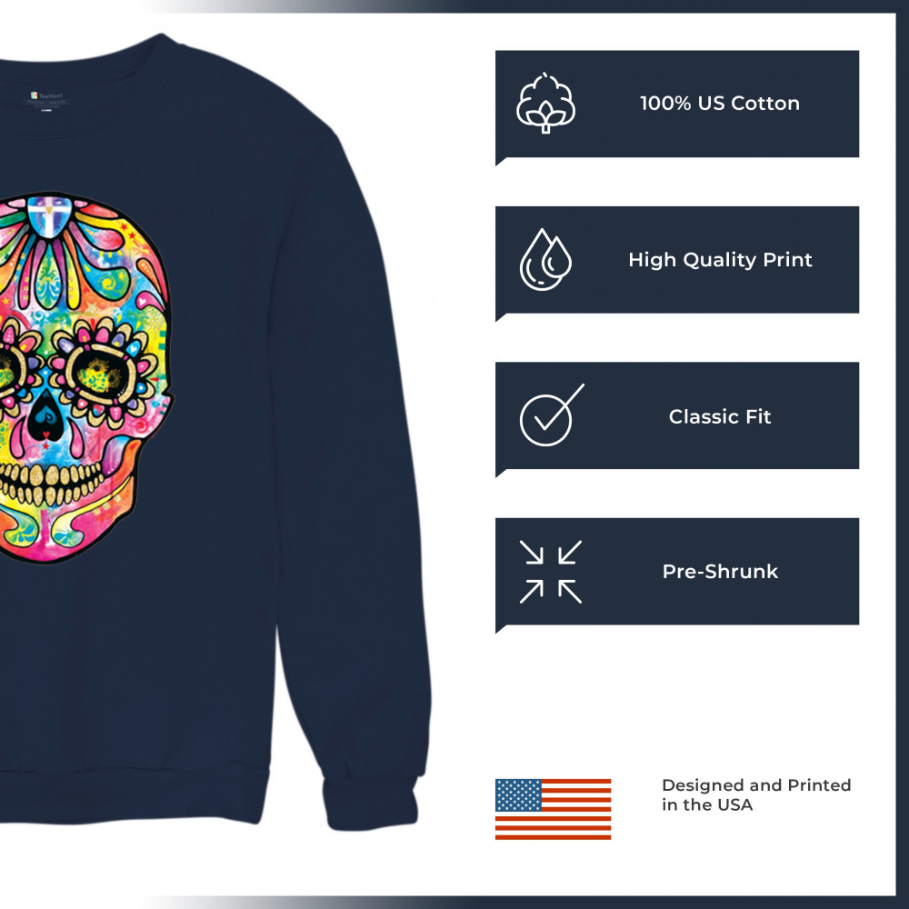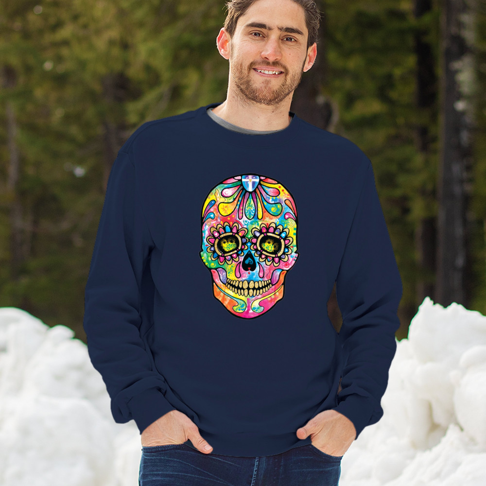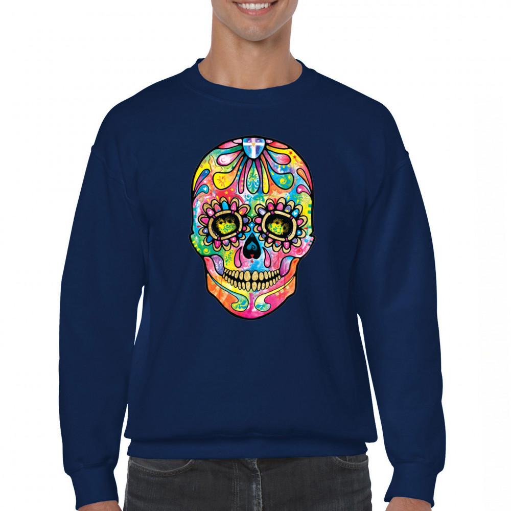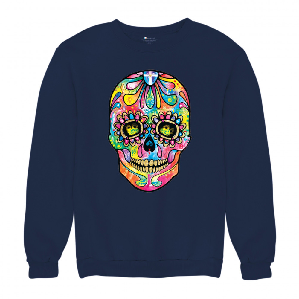 DEAN RUSSO SUGAR SKULL sweatshirt day of the dead neon calavera crewneck navy blue
