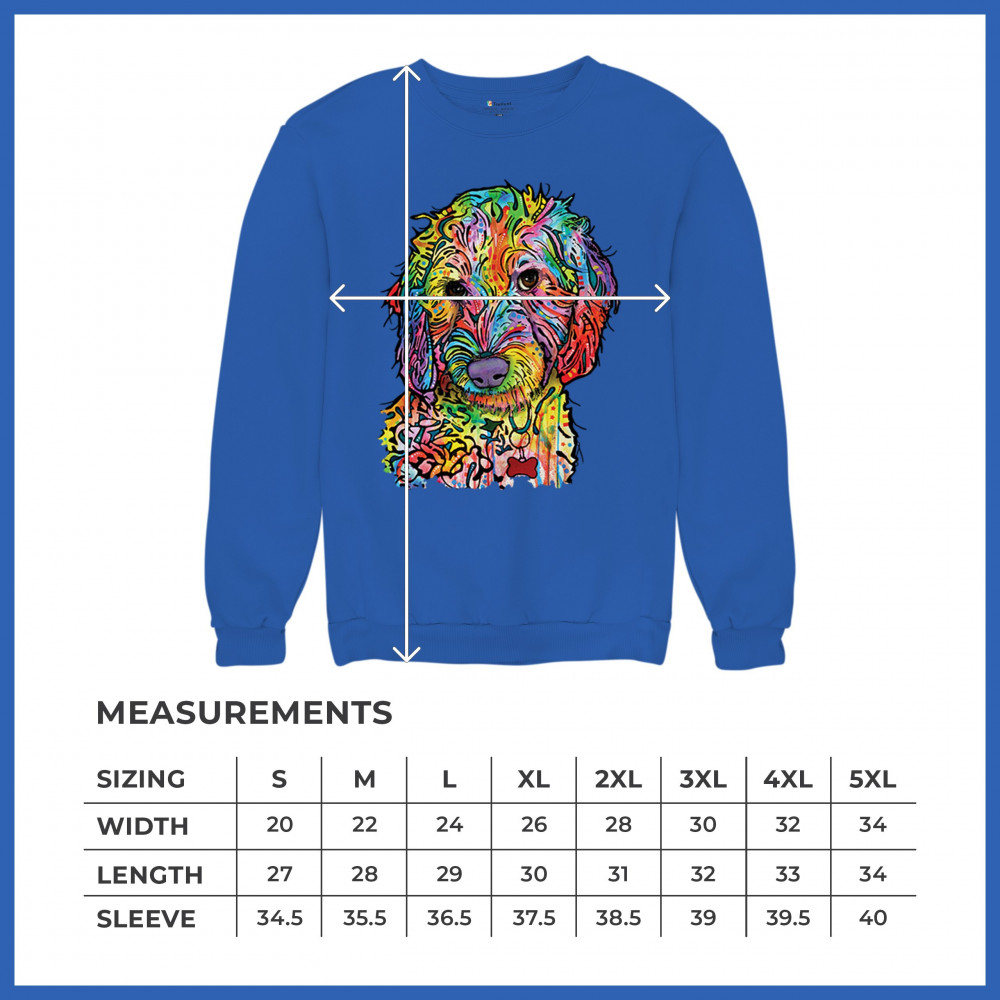 DEAN RUSSO SWEET POODLE sweatshirt dog pattern puppy adopt pet crewneck royal blue