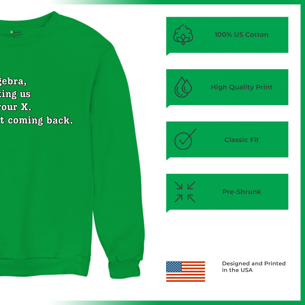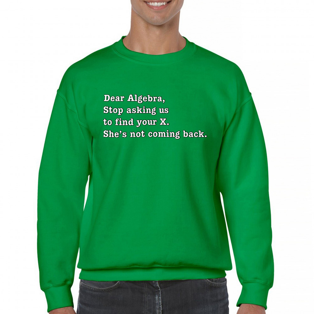 DEAR ALGEBRA STOP ASKING US TO FIND YOUR X sweatshirt funny humor crewneck green