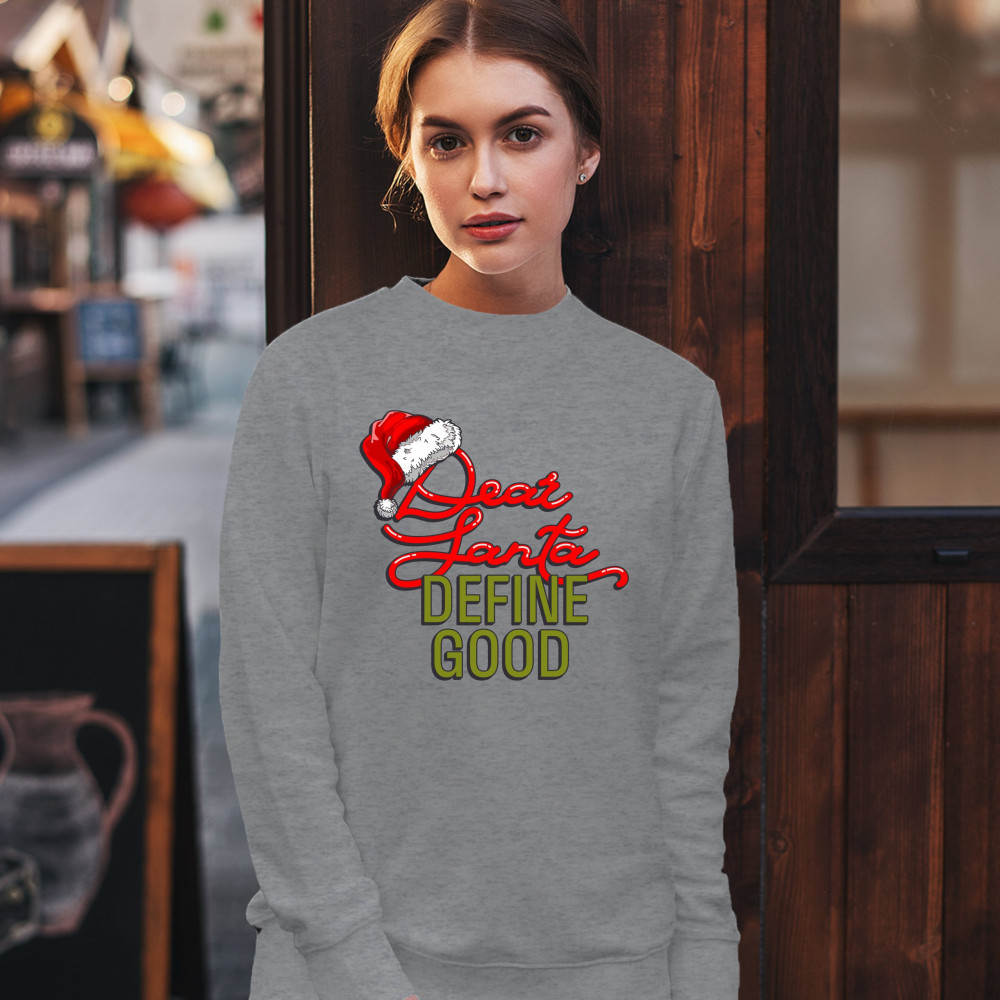 DEAR SANTA DEFINE GOOD sweatshirt merry christmas naughty or nice crewneck gray