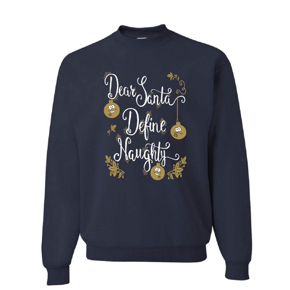 DEAR SANTA DEFINE NAUGHTY sweatshirt funny christmas xmas holiday sweater navy blue