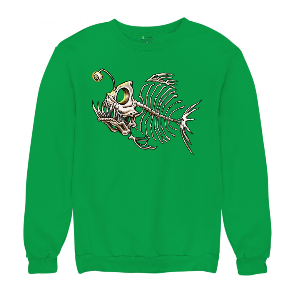 This highly detailed angler fish skeleton design features sharp bones, glowing lure eye, and deep sea terror aesthetic. Perfect for horror fans, marine biology lovers, and ocean adventurers, it combines underwater predator vibes with bone art flair. A great fit for Halloween, dive clubs, and dark sea aesthetics.