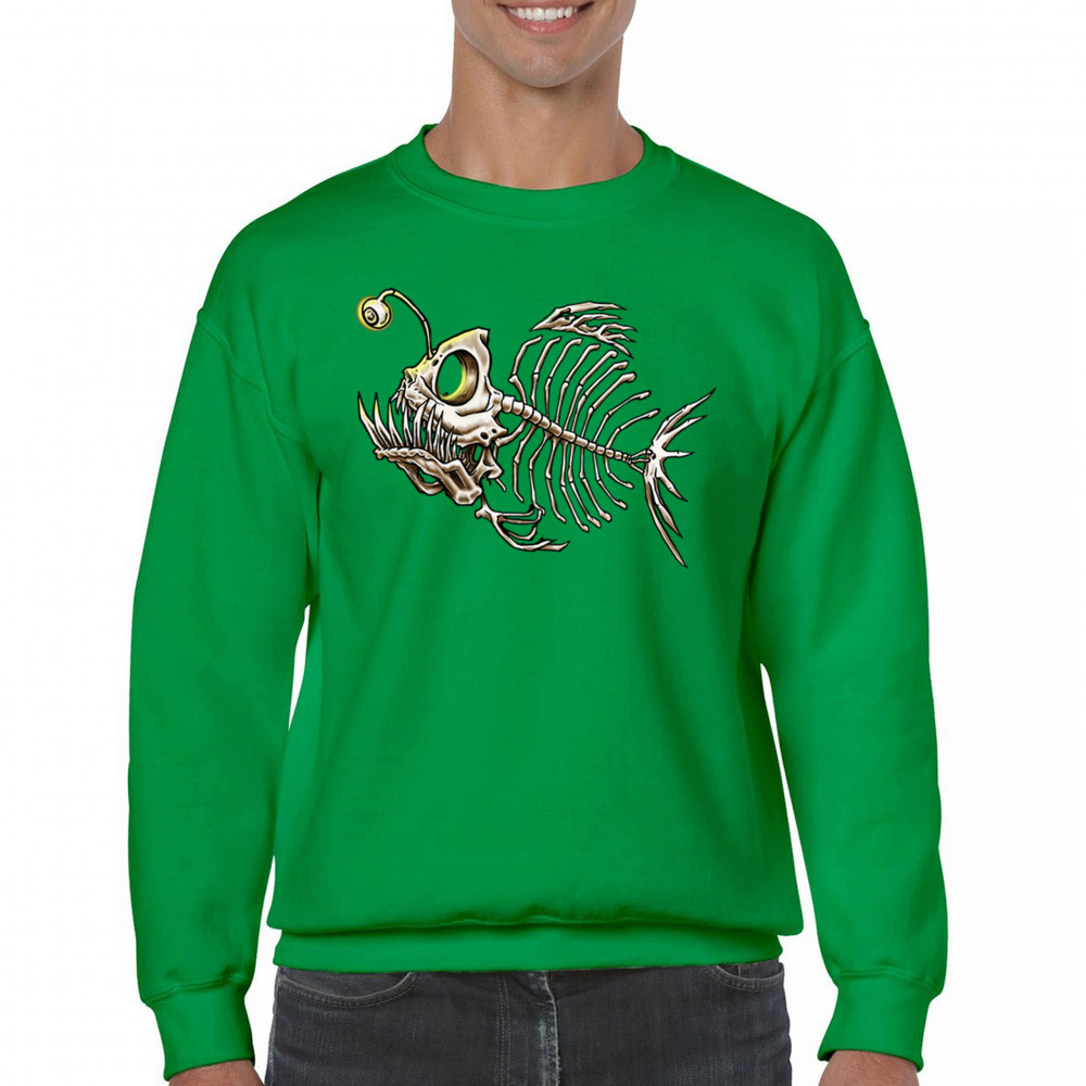 Creepy angler fish skeleton with glowing eye and horror bones. Perfect for sea lovers, divers, Halloween, and marine biology fans.
